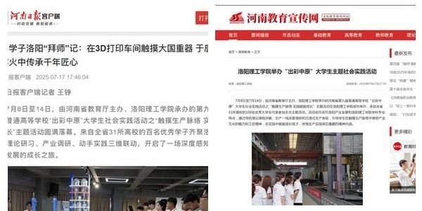 河南日报客户端、河南教育宣传网、大象新闻等多家媒体报道我校成功举办“出彩中原”大学生主题社会实践活动