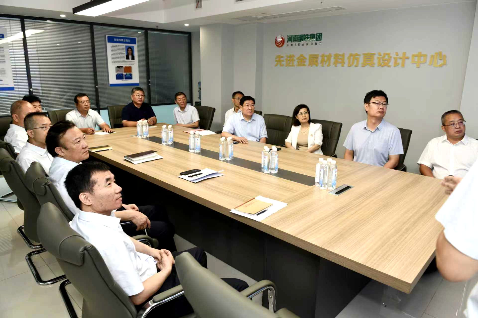 河南钢铁集团有限公司产业研究院、科技创新中心、人力资源部,我校党委办公室、科研处、校企合作工作处、材料科学与工程学院、智能制造学院、人工智能学院负责人等参加调研交流。