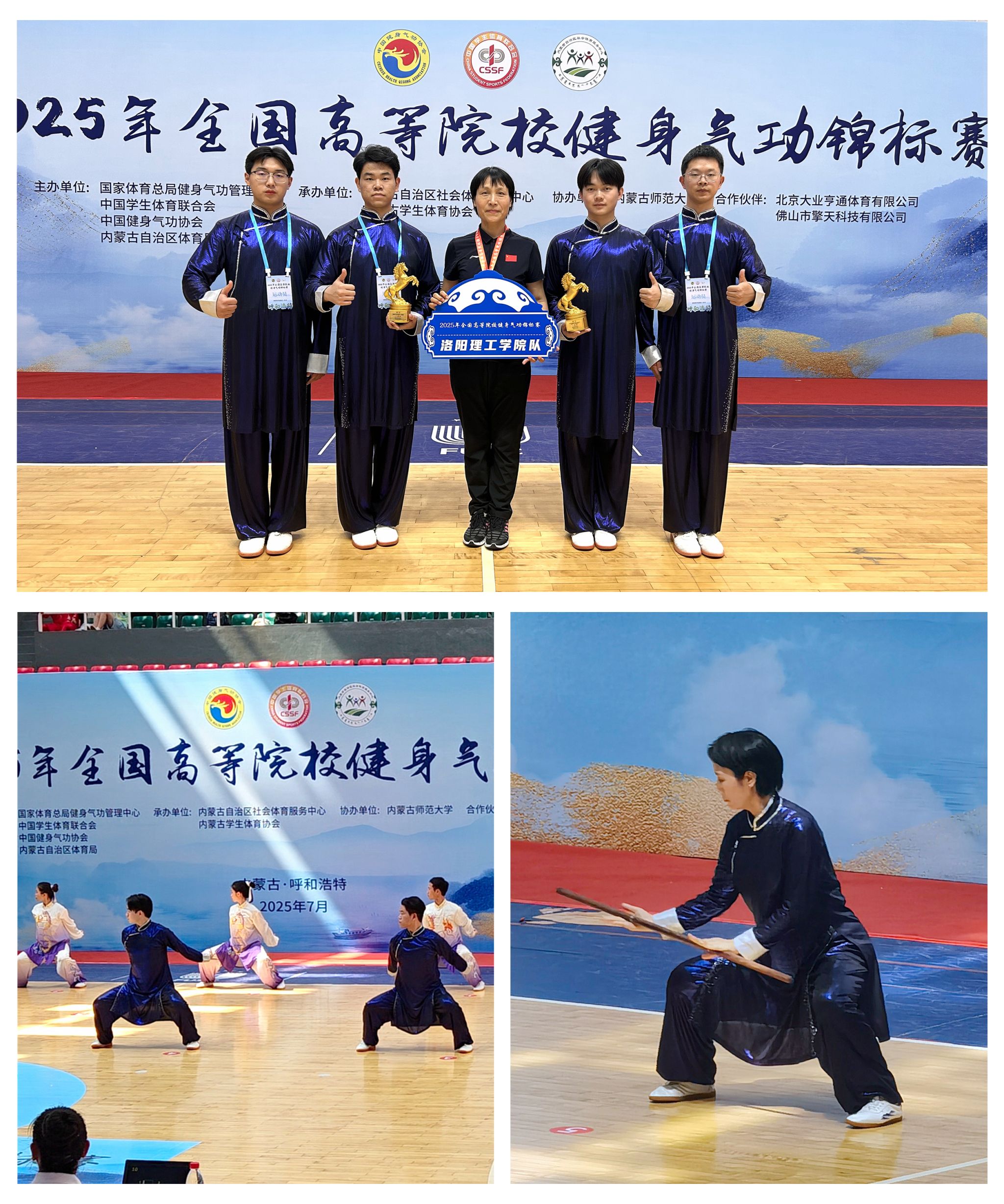 我校代表队4名运动员在体育教学部郑强芬老师的带领下,完美演绎了八段锦的刚柔相济与导引养生功十二法的圆活连贯,继2022年、2024年夺冠后再度包揽两项集体一等奖。同时,个人赛收获一等奖2项,二等奖2项。郑强芬老师兼运动员参加比赛,荣获女子教工组太极养生杖一等奖。
