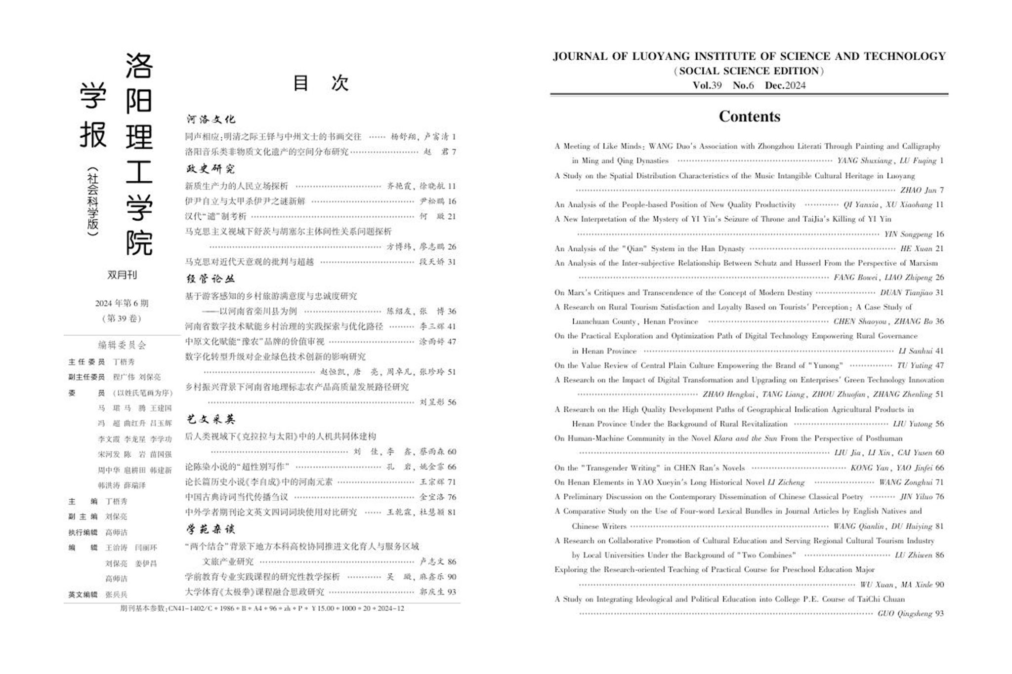 《洛阳腾博官网诚信为本专业服务学报(社会科学版)》2024年第6期目次