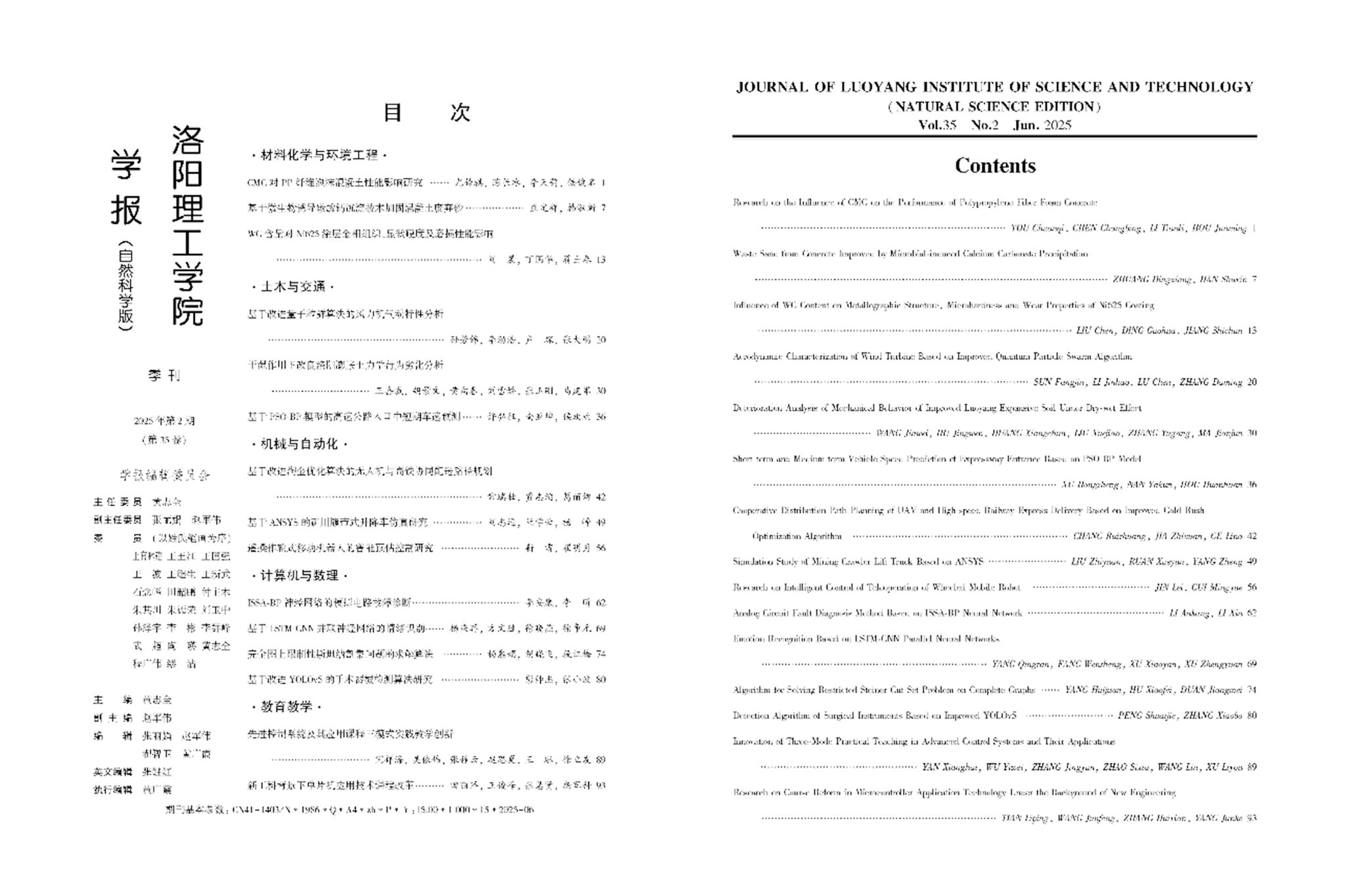 《洛阳腾博官网诚信为本专业服务学报(自然科学版)》2025年第2期封皮封底
