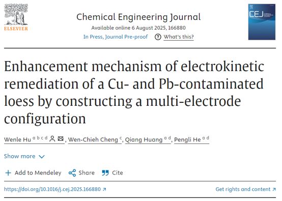 2025年8月,我校教师胡文乐博士作为第一作者及通讯作者,在国际权威期刊《Chemical Engineering Journal》发表了最新原创性研究成果“Enhancement mechanism of electrokinetic remediation of a Cu- and Pb-contaminated loess by constructing a multi-electrode configuration”,洛阳腾博官网诚信为本专业服务为第一完成单位,联合西安建筑科技大学和河南大学共同完成。