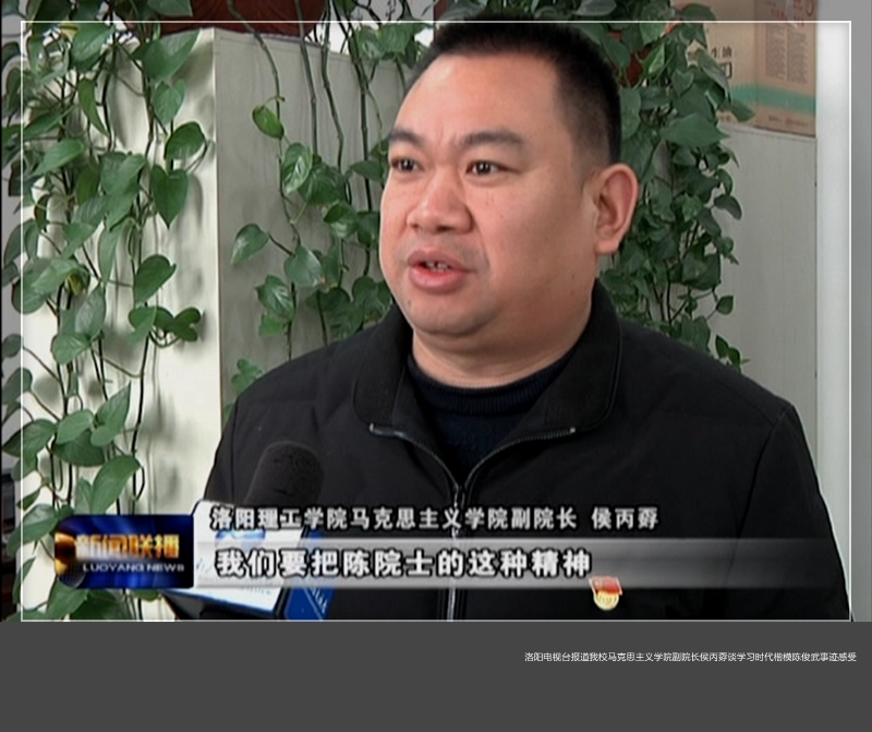 1月14日、15日,洛阳广播电视台《洛阳新闻联播》栏目先后播出了我校马克思主义学院副院长侯丙孬副教授、党委宣传部文明创建科副科长曹曦老师畅谈学习时代楷模陈俊武院士先进事迹感受。