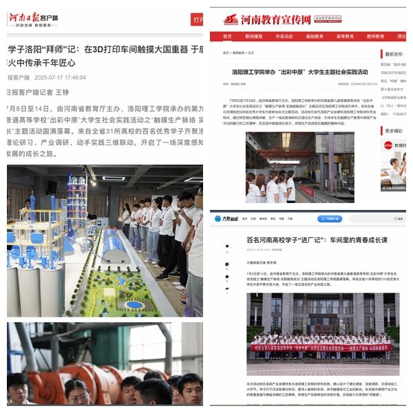 1.河南日报客户端,2025年7月17日,《百名学子洛阳“拜师”记:在3D打印车间触摸大国重器 于唐三彩窑火中传承千年匠心》