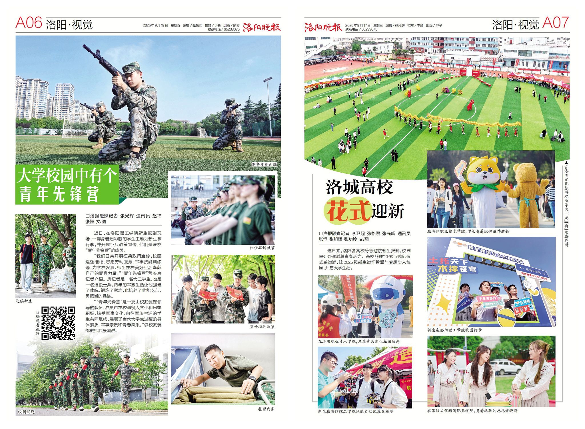 9月17日,《洛阳晚报》A07版还以《洛城高校花式迎新》为题,报道了我校仪式感满满的迎接2025届新生情况。