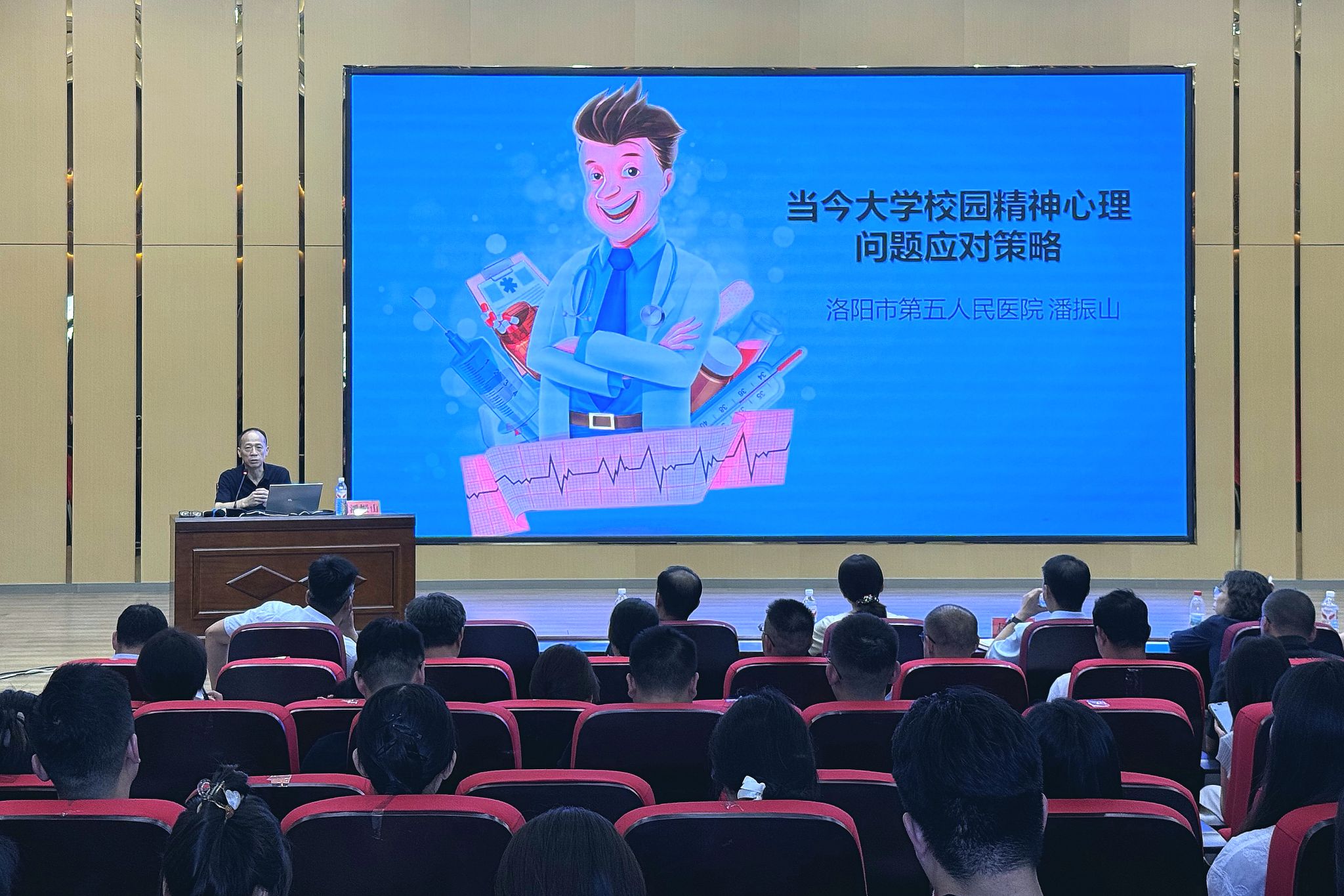 7月7日下午,我校特邀洛阳市第五人民医院精神科主任潘振山在开元校区图书馆报告厅作《大学校园精神心理问题应对策略》的专题讲座。学生工作处、心理健康教育中心、各一站式学生社区负责人,各二级学院党委副书记、心理健康教育办公室主任、全体辅导员和心理健康教育中心全体教师参加讲座。