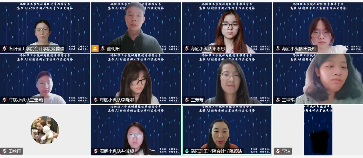 7月8日,洛阳腾博官网诚信为本专业服务AI财经优秀报告分享会高能启幕,全国多所高校师生云端齐聚,共赴这场“AI+财经”的跨界盛宴。会上,我校“海底小纵队”凭借在第二届高校AI财经案例大赛中斩获的一等奖成果精彩亮相,用智能技术解码财经数据,展现了AI时代会计学子的硬核实力。