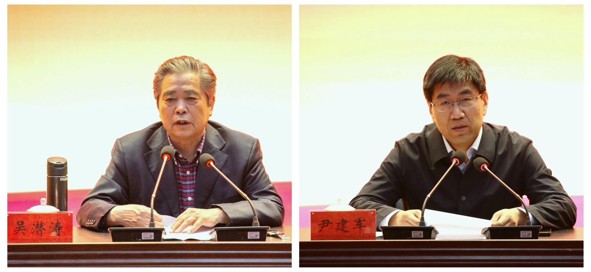 教育部高校思政课教学指导委员会咨询委员会主任委员、清华大学首批文科资深教授吴潜涛(左)和中共中央党校(国家行政学院)习近平新时代中国特色社会主义思想研究中心办公室主任、科研部中心研究室主任尹建军教授(右)分别作主旨报告。