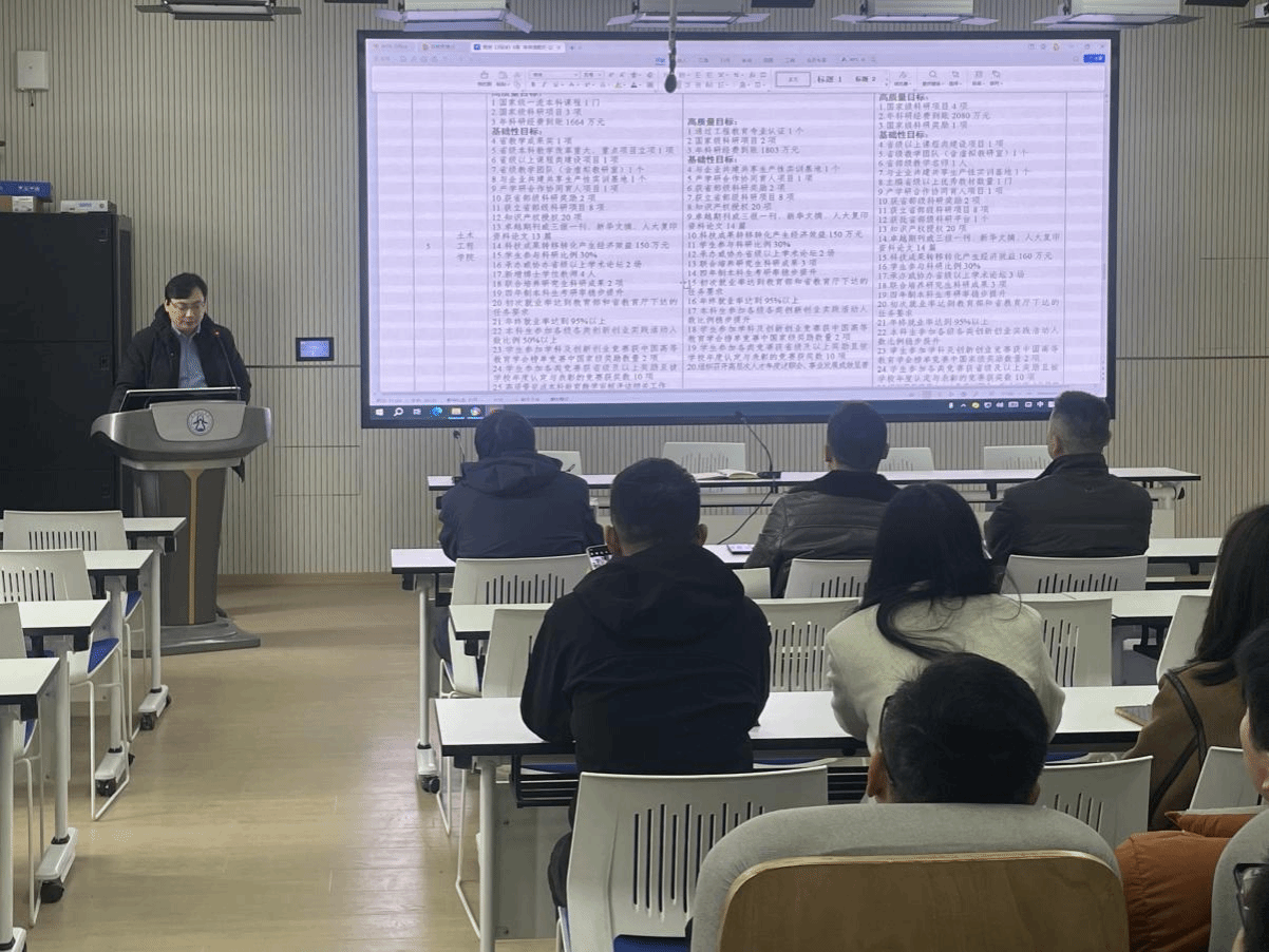 土木工程学院  2月29日,土木工程学院于FM414会议室召开教职工大会,传达学校2024年工作会议精神,安排部署学院工作。会议对本学期本科教育教学审核评估、教研科研、学科建设、创新创业等各项重点工作进行了强调和总体部署。会议强调,要继续发扬团结奋进、勇攀高峰的精神,坚持目标导向、问题导向、结果导向,扎实推动学校工作目标任务落地见效,加快推进学校高质量内涵式发展。