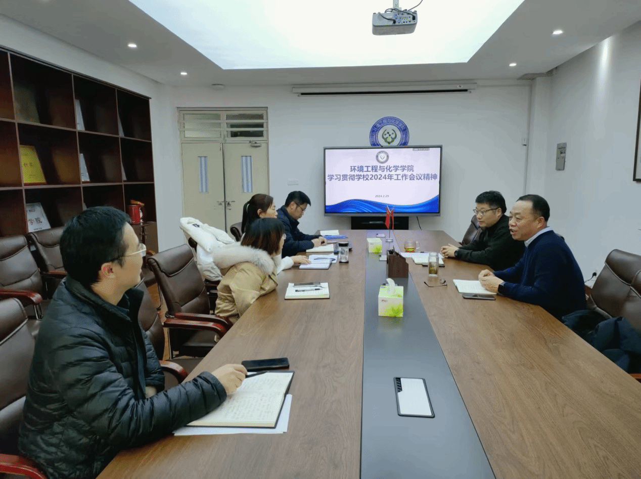 环境工程与化学学院  2月29日下午环境工程与化学学院领导班子在DN303召开会议,认真学习了卢志文书记和丁梧秀校长在学校2024年工作会议上的讲话,深入学习贯彻2024年学校工作会议精神。班子成员结合各自分管工作,聚焦申硕攻坚和审核评估等学校重点任务,深入研究分析学院新一年重要工作的思路和措施办法。会议要求,一要聚焦教育教学的高水平内涵建设目标任务,进一步强化成果导向,强化重点培育,切实“改作风、顾大局、转思想”,再创学院新的成绩;二要心怀校之大者、确保安全稳定、强化规范管理、提升组织活力、加强文化育人、回归育人初心,助力学生成长成才。在学校党委坚强领导下,在攻坚克难中凝心聚力,砥砺奋进,为学校发展贡献力量。