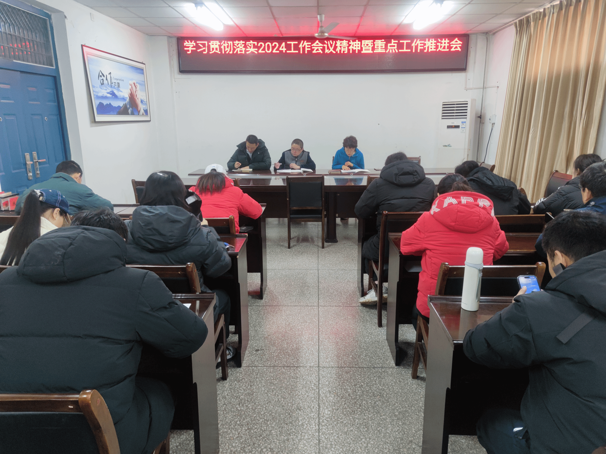 数学与物理教学部  2月29日下午,数学与物理教学部召开全体教职工大会,认真学习传达学校2024年工作会议精神。会议认真传达了校长丁梧秀和党委书记卢志文在2024年工作会议上的讲话内容,并要求:一要准确把握形势,抢抓机遇,增强学校发展信心;二要全面加强党的建设,引领事业高质量发展;三要全力以赴、突出重点,推动学校事业高质量发展;四要强化工作作风,务实肯干,争创一流佳绩。