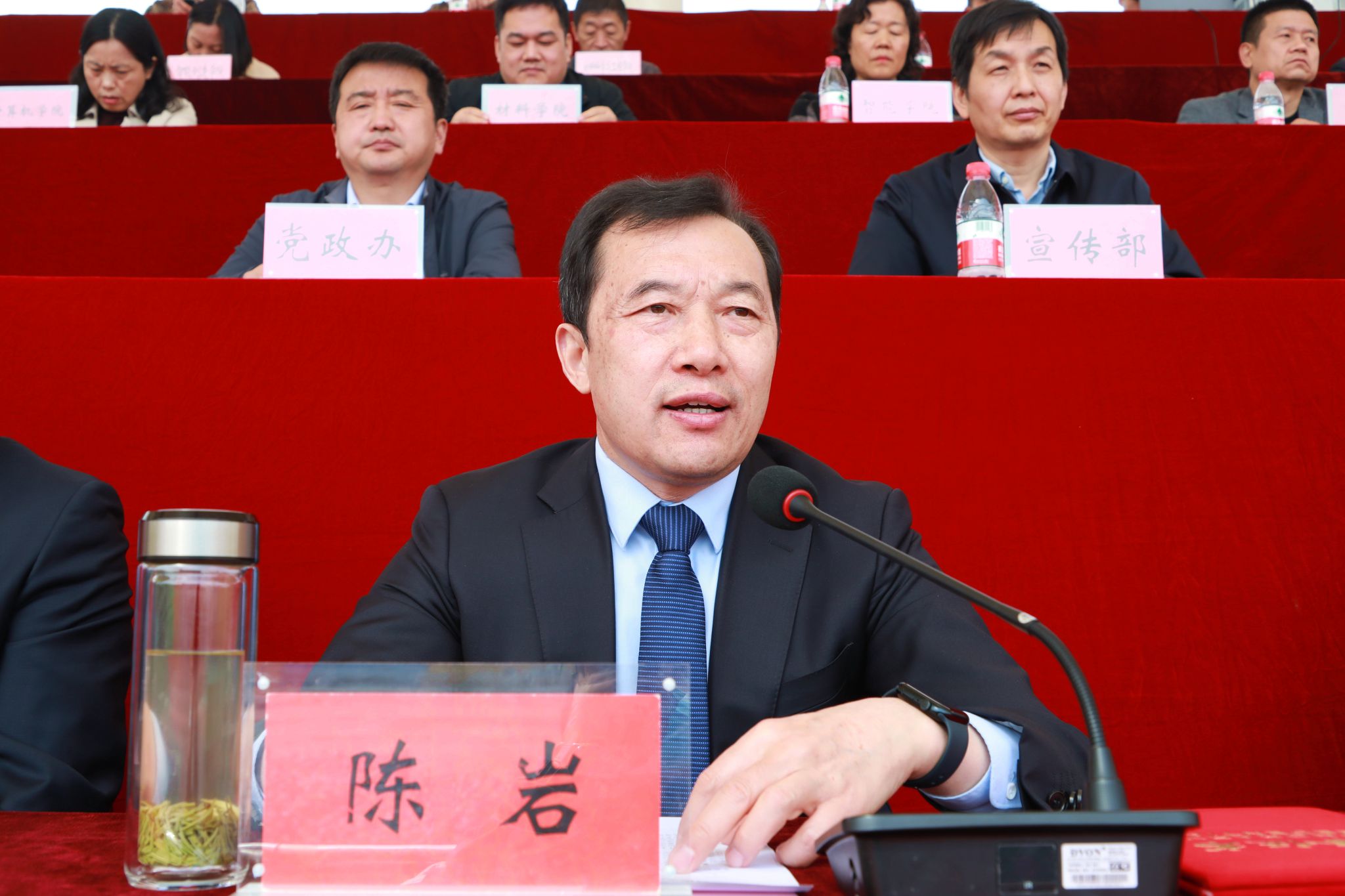 校党委书记陈岩在讲话中代表校党委、行政向一直以来支持学校国防教育工作的洛阳军分区首长表示衷心的感谢;为军训工作付出艰辛努力的全校80多名大学生教官和老师们表示诚挚的慰问;向不怕辛劳、顽强拼搏、取得良好训练成绩的5800多名同学表示热烈的祝贺。