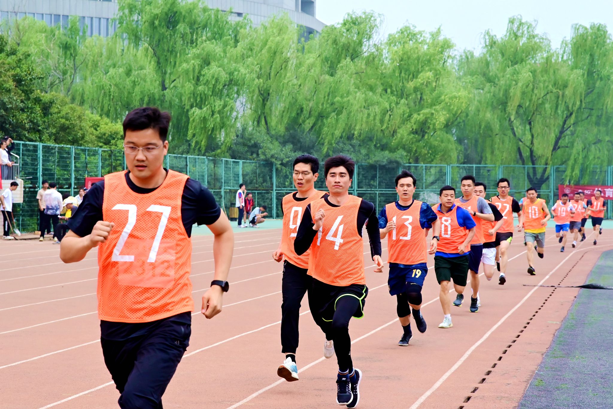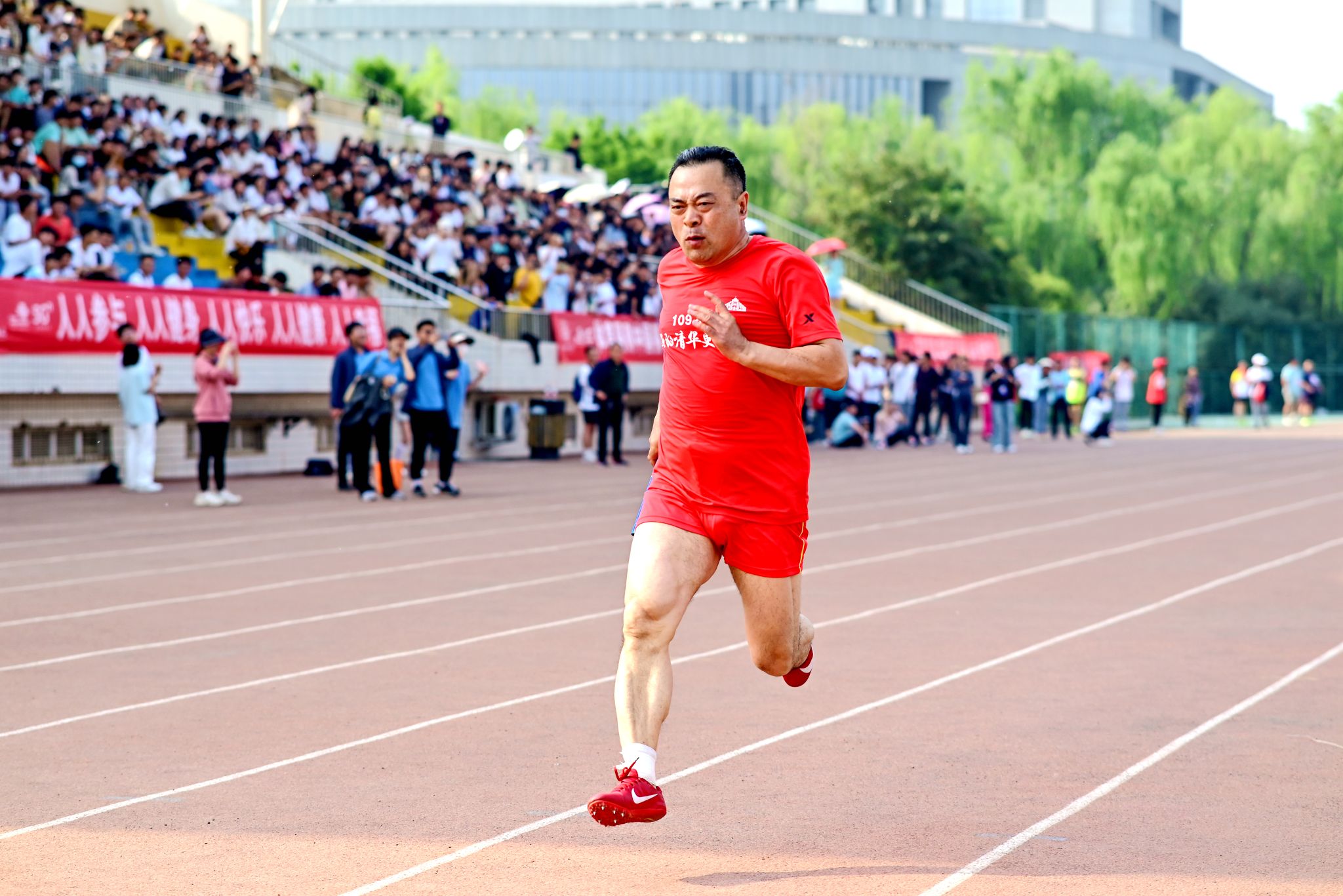 校长张锐在教工男子4*100米接力赛场