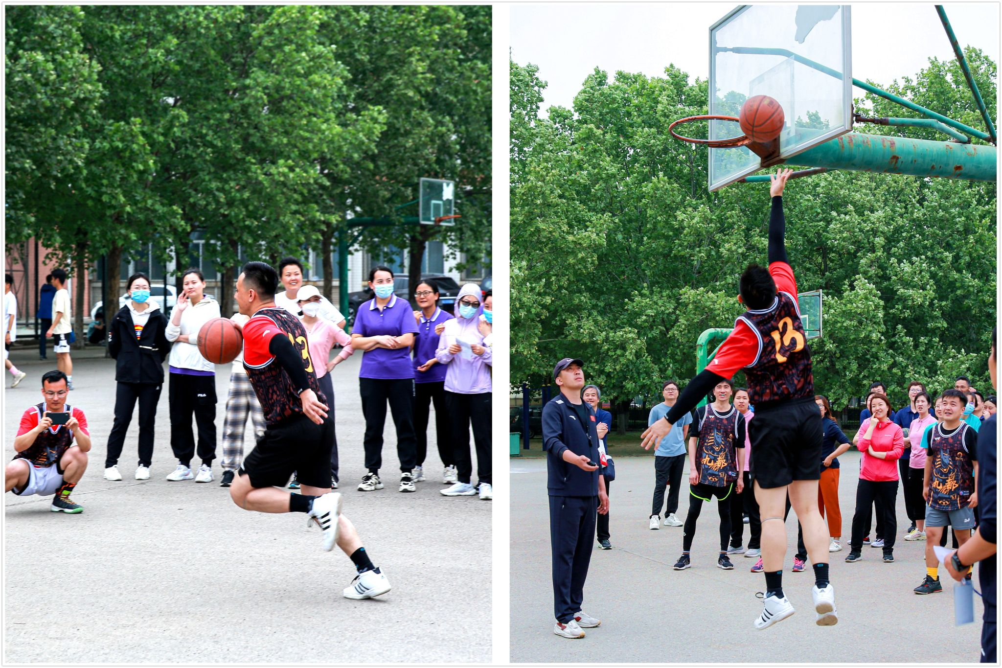 教工篮球运球上篮接力赛现场
