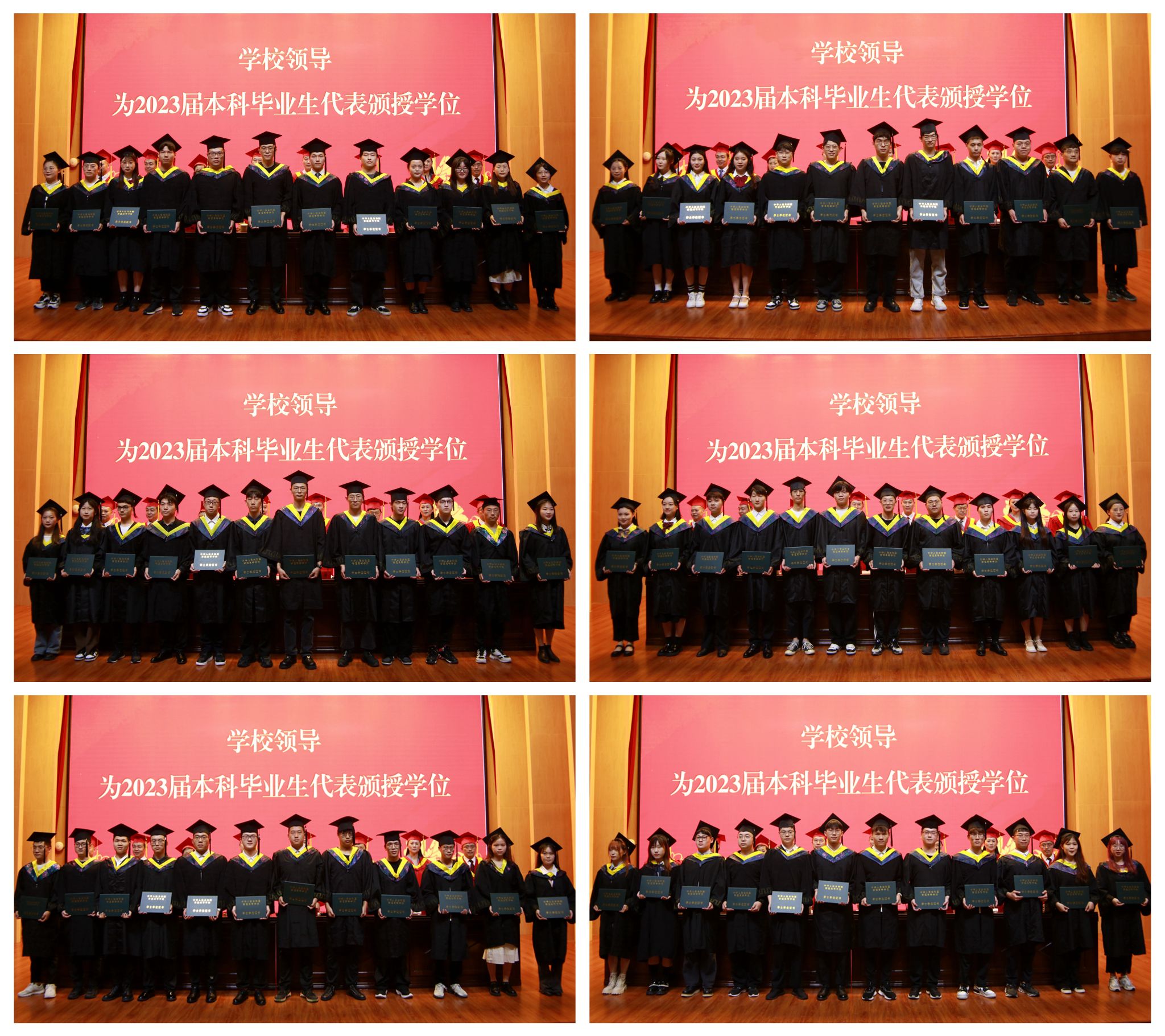 学校领导分别为12个二级学院的2023届本科毕业生代表颁授学位证书