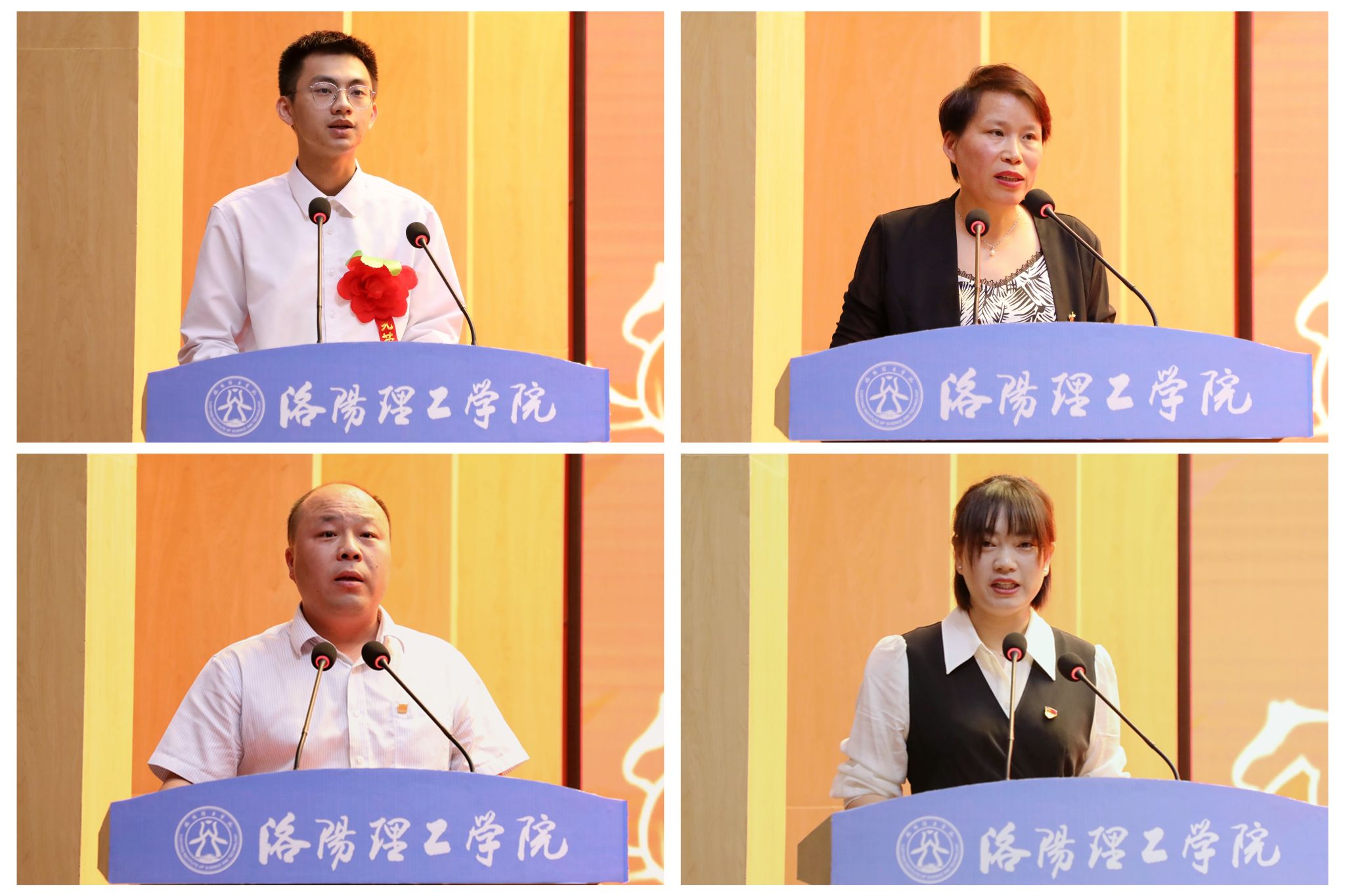 “河南省三好学生标兵、2023届河南省优秀应届毕业生”、计算机与信息工程学院学生吴伟彬代表全体毕业生发言。他感恩大学时光,感谢遇到的每一位师长、友人,祝母校年年桃李、岁岁芬芳。河南省语言学会常务理事、河南省教育厅学术技术带头人、人文与社会科学学院教授褚红以《拨穗正冠恰青春,生逢盛世勇前行》为题代表全体教师发言。她向全体毕业生表示祝贺,并从要心怀感恩之情;勿以恶小而为之;要勇担时代使命;要紧跟时代步伐四个方面与同学们进行了交流分享。校级优秀共产党员、经济与管理学院辅导员张静利代表全校学生工作者寄语全体毕业生,并向大家推荐了追梦、成长和拼搏三个成功秘笈。校友代表、土木工程学院07届毕业生、河南省工程建设“优秀项目经理”、河南三建建设集团有限公司常务副总经理王正涛代表校友发言。他感恩母校的悉心培养,用自己16年的职业生涯经历勉励大家,在今后的学习工作中“不论在哪儿都要摁住心、踏踏实实、好好干,一步一个脚印,往前走。”要通过不断的积累、沉淀与升华,成就精彩人生。