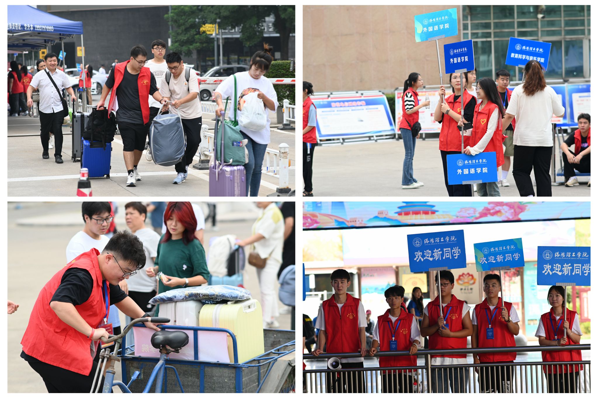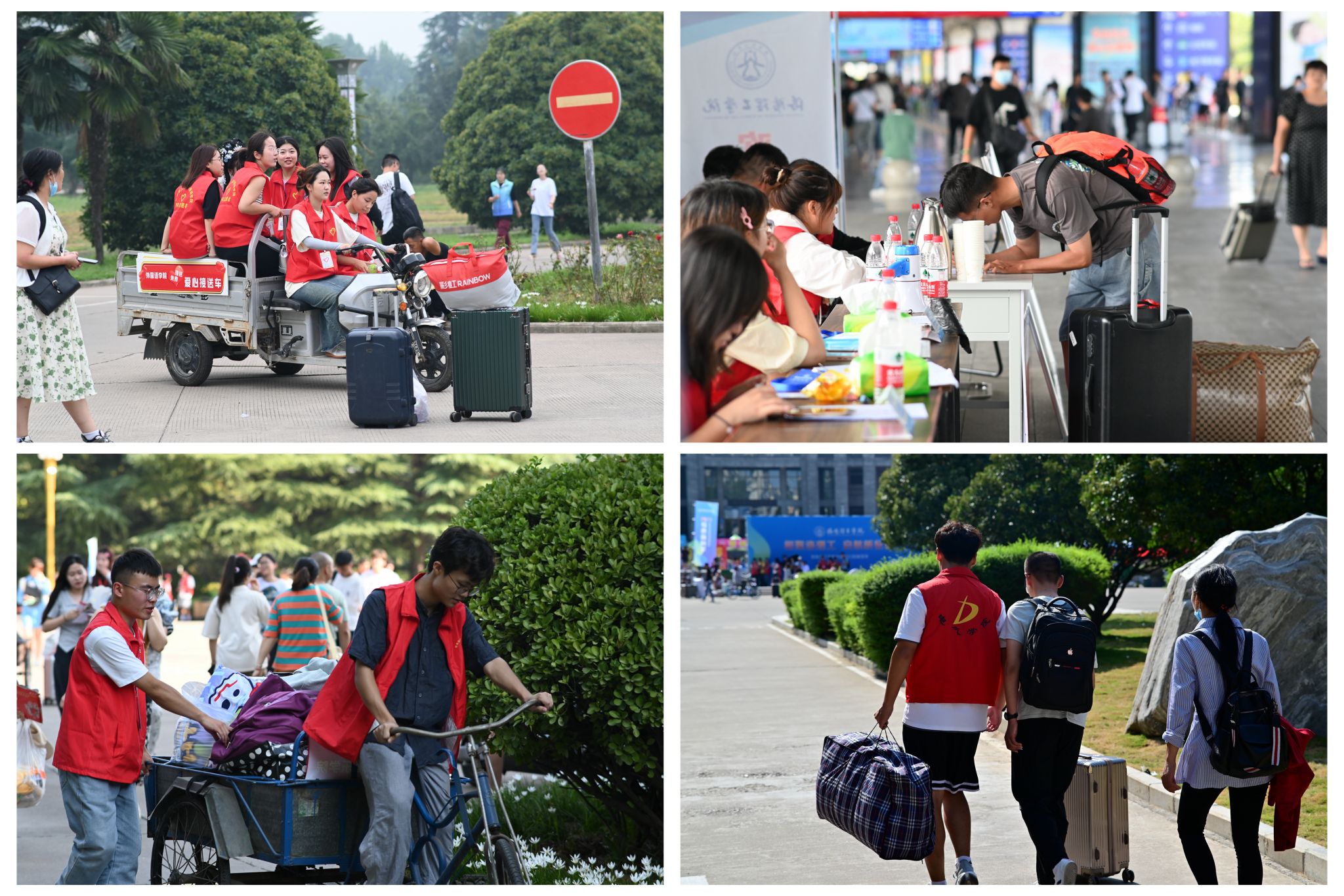 高铁站迎新现场及志愿者搬运行李现场