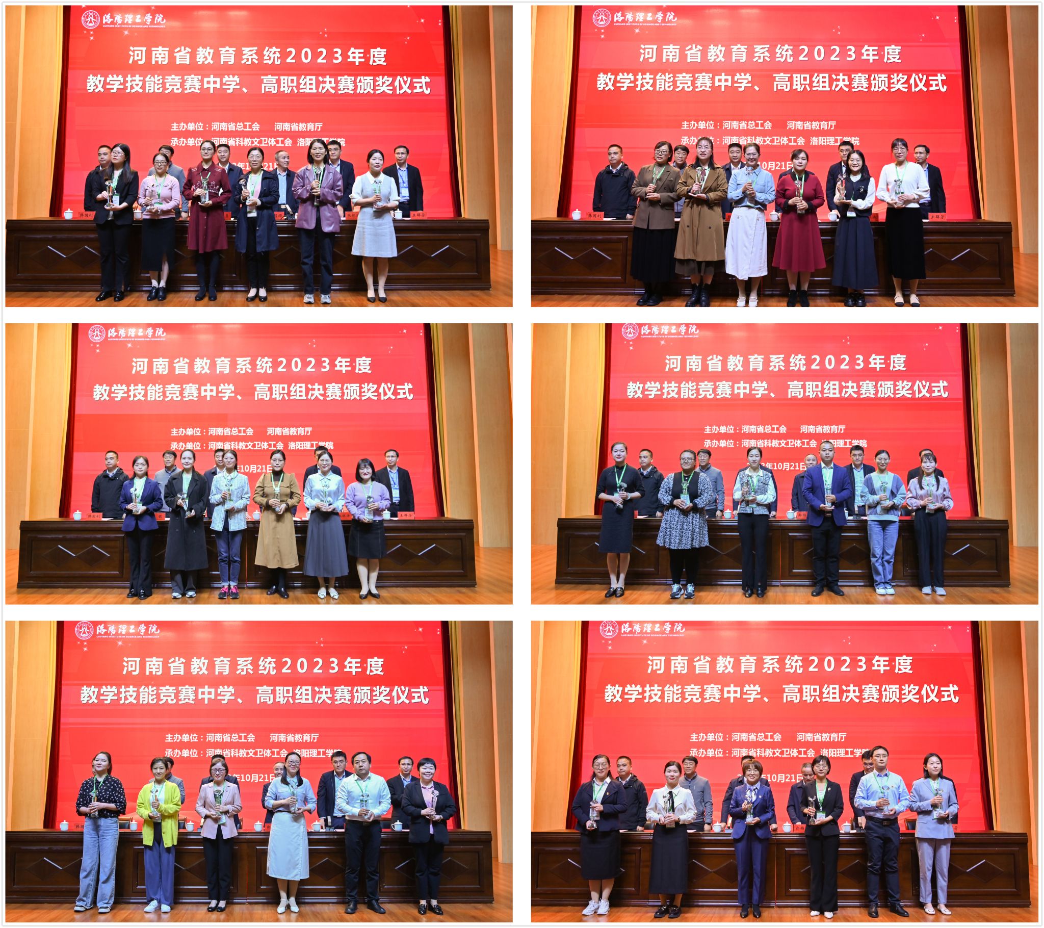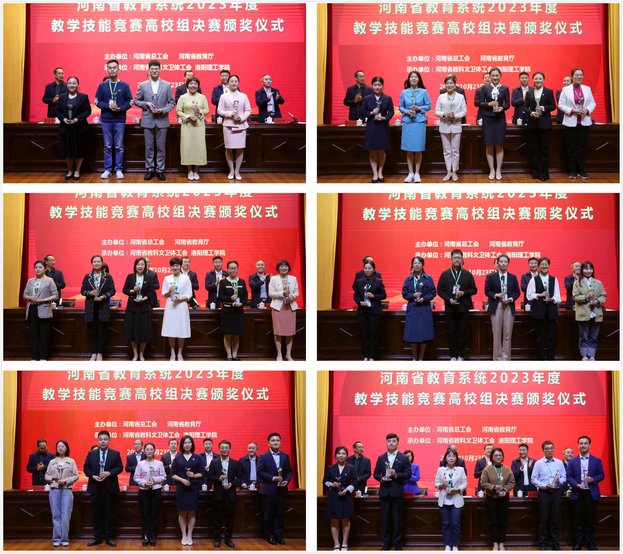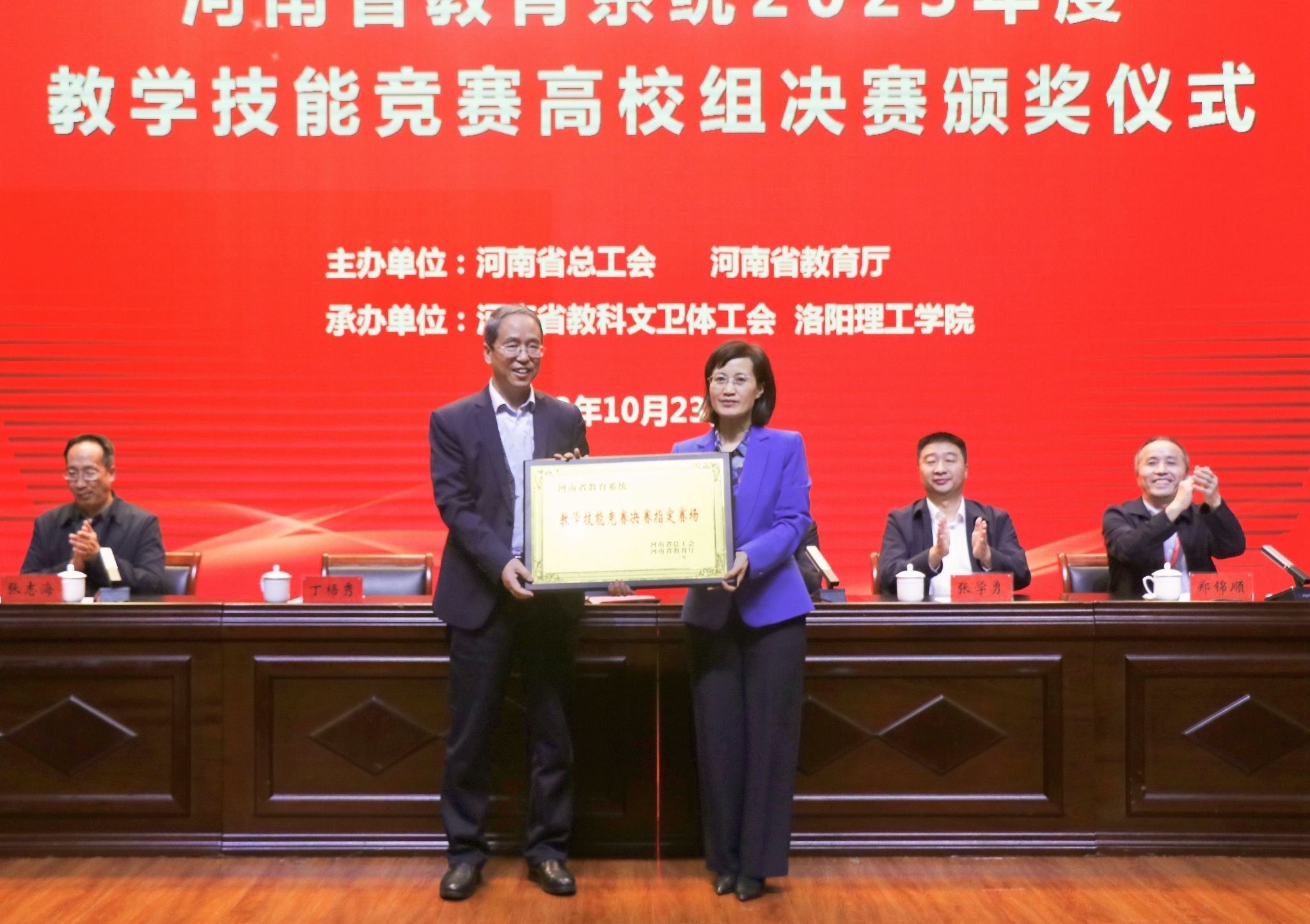 高校组颁奖仪式上,洛阳腾博官网诚信为本专业服务被河南省总工会、河南省教育厅授予河南省教育系统2023年度教学技能竞赛优秀组织单位、河南省教育系统教学技能竞赛决赛指定赛场,并进行现场授牌。
