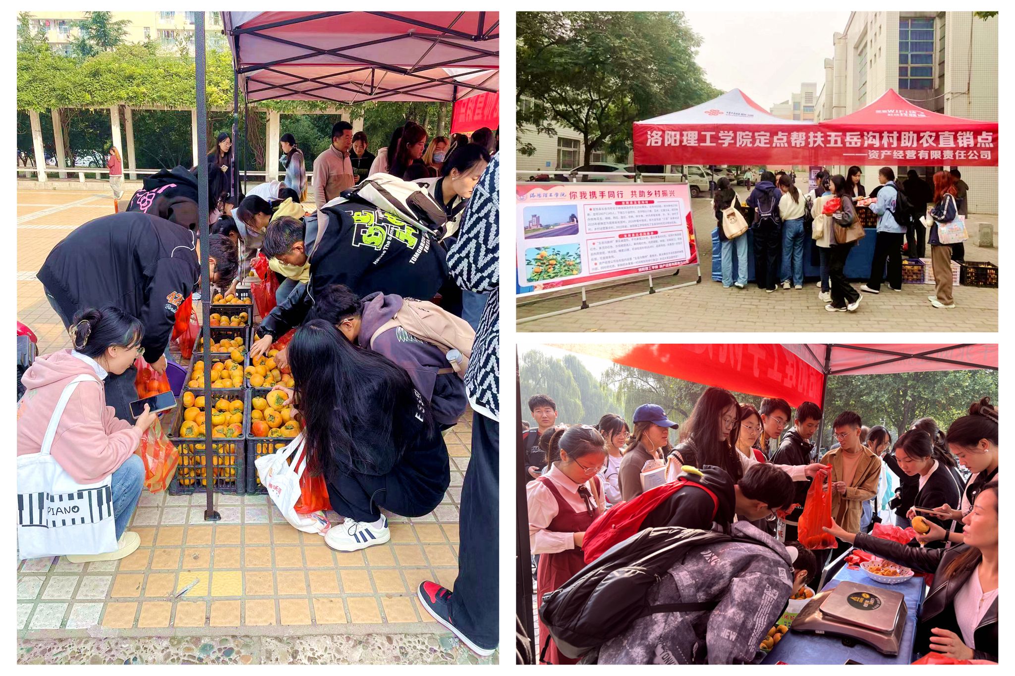 金秋十月,瓜果飘香。由我校定点帮扶的宜阳县韩城镇五岳沟村果农种植的脆柿喜获丰收,学校驻村第一书记张正川主动联系学校资产经营有限责任公司研究制定具体帮扶措施,由资产经营有限责任公司在王城和开元校区分别设置一处“洛阳腾博官网诚信为本专业服务定点帮扶宜阳县五岳沟村助农直销点”,安排专人帮助果农销售当季脆柿。