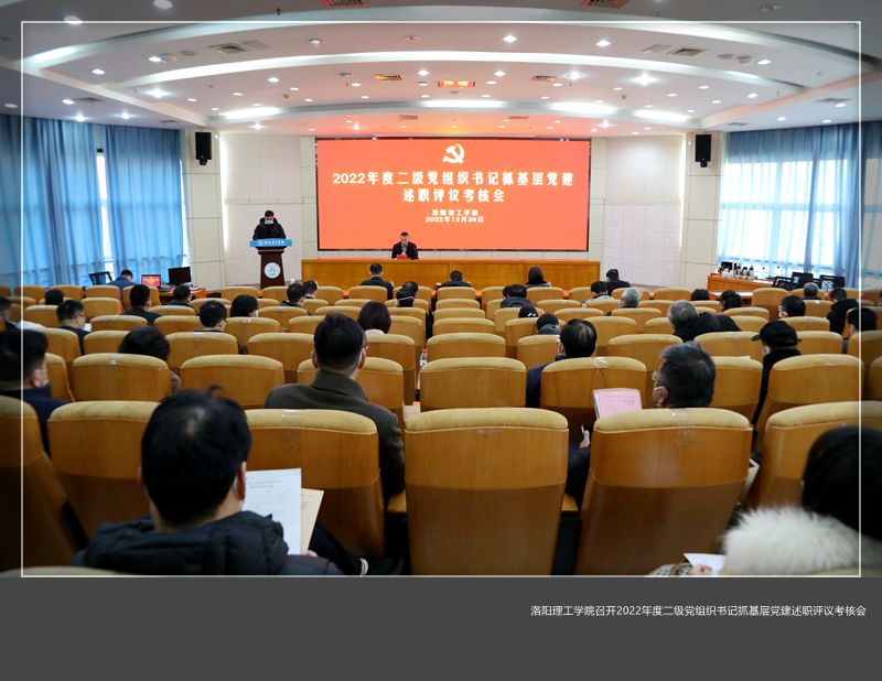 12月28日上午,洛阳腾博官网诚信为本专业服务在王城校区办公楼二楼报告厅召开2022年度二级党组织书记抓基层党建述职评议考核会。校领导张锐、曾涛、胡恩立、丁梧秀、王新武出席会议,党群部门主要负责人、各二级党组织书记、“两代表一委员”、部分教职工代表等参加了会议。会议由校党委副书记、工会主席曾涛主持。