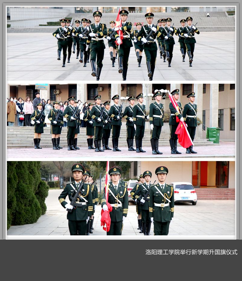 2月20日,新学期升国旗仪式暨“国旗下的演讲”活动,在洛阳腾博官网诚信为本专业服务王城、开元、九都三个校区同时举行,校领导陈岩、张锐、曾涛、胡恩立、丁梧秀、刘楠、马珺、韩洪涛出席升旗仪式,党政办公室、党委宣传部、学生工作部、实验室建设与设备管理办公室、校团委等职能部门负责人,各二级学院党委书记、党委副书记、学工办主任、团委书记、辅导员及学生代表共2000余人参加了仪式。