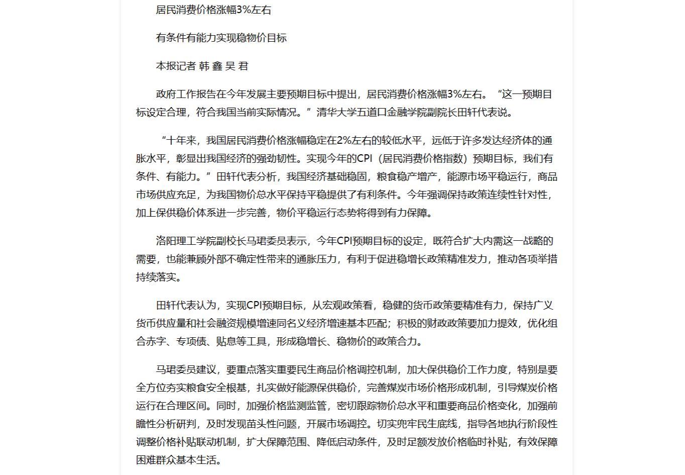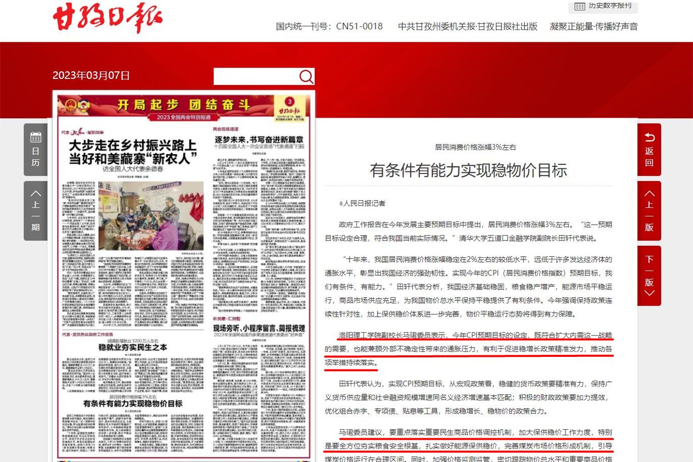 11.《甘孜日报》 2023-03-07第03版特别报道《居民消费价格涨幅3%左右--有条件有能力实现稳物价目标》: