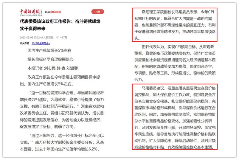 2.中新网 2023-03-06《代表委员热议政府工作报告:奋斗铸就辉煌 实干赢得未来》: