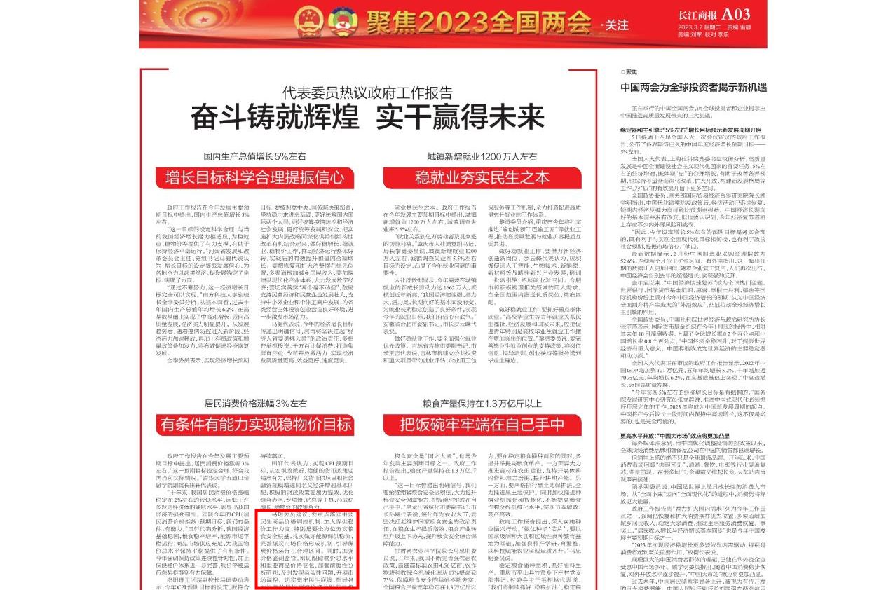 9.《长江商报》 2023-03-07第A03版《代表委员热议政府工作报告 奋斗铸就辉煌 实干赢得未来 国内生产总值增长5%左右》: