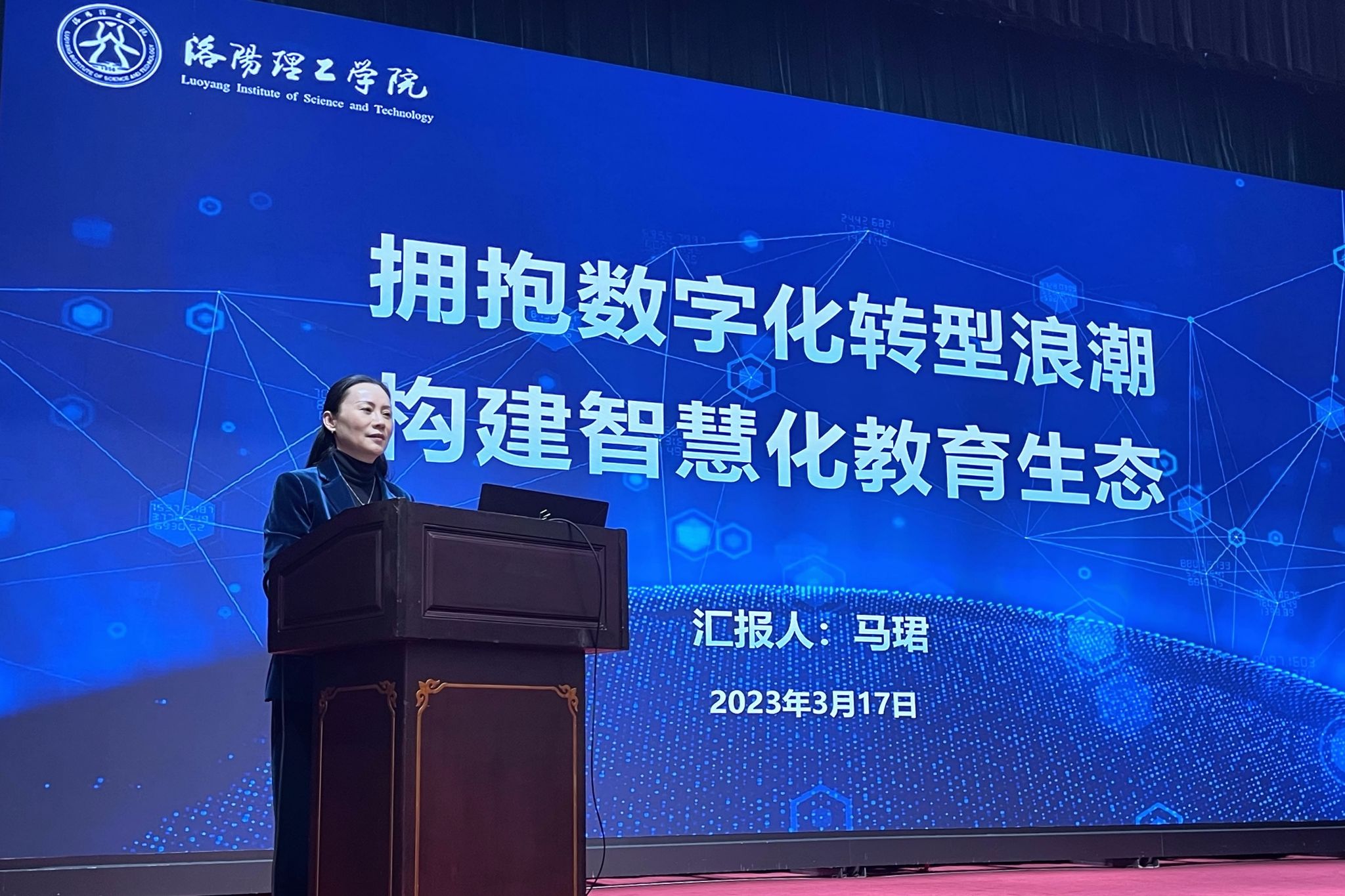 洛阳腾博官网诚信为本专业服务副校长马珺代表学校作题为《拥抱数字化转型浪潮 构建智慧化教育生态》交流发言