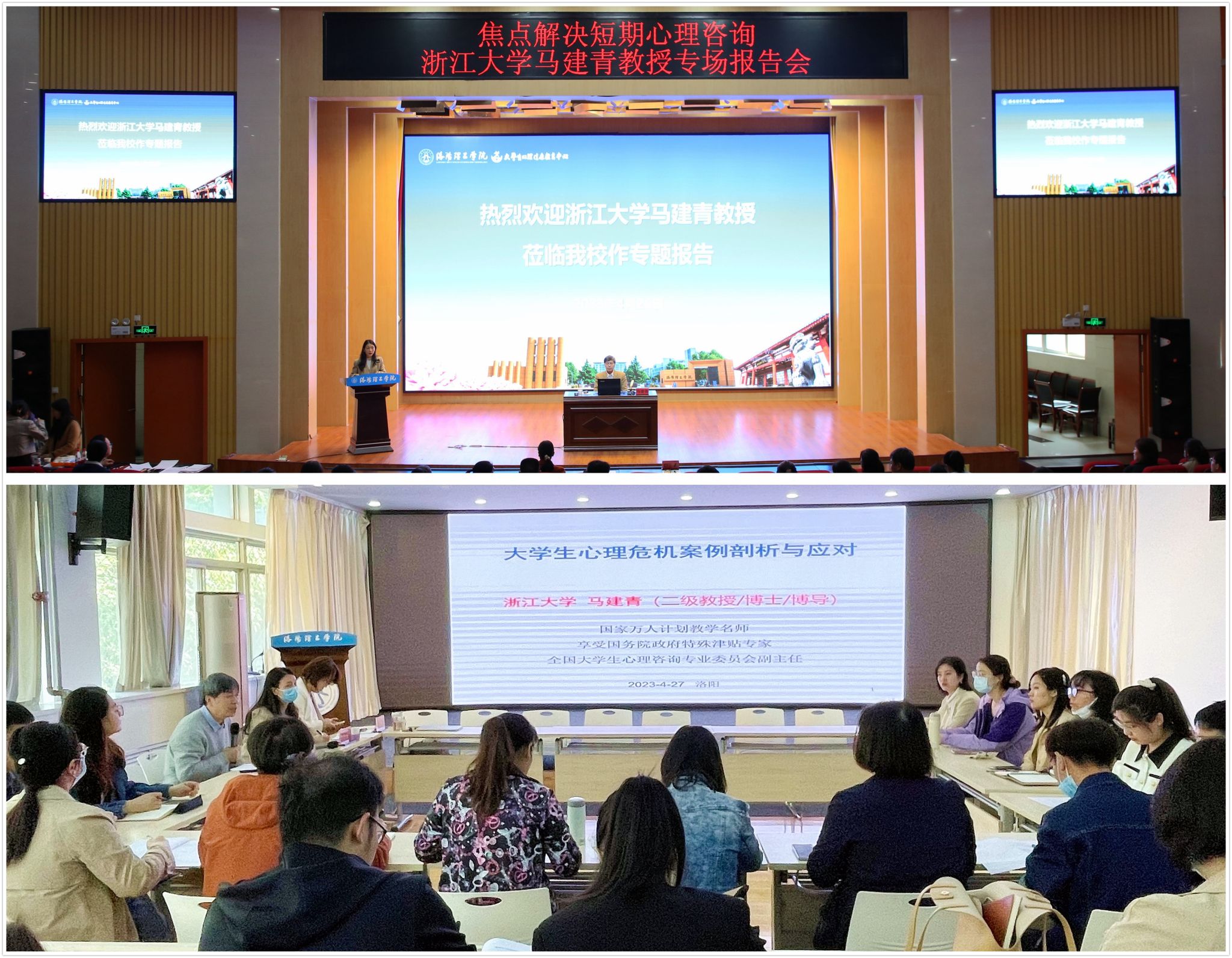 为进一步加强我校大学生心理健康教育工作,提升学生工作队伍精准识别心理问题和有效开展心理疏导的专业能力,4月26日,学生工作处大学生心理健康教育中心邀请浙江大学博士生导师马建青教授在王城校区图书信息中心报告厅举行焦点解决短期心理咨询工作坊。学生工作处、校工会等相关部门负责人,各二级学院党委副书记、全体辅导员,大学生心理健康教育中心全体教师及来自兄弟院校的教师代表共187人参加了此次工作坊。