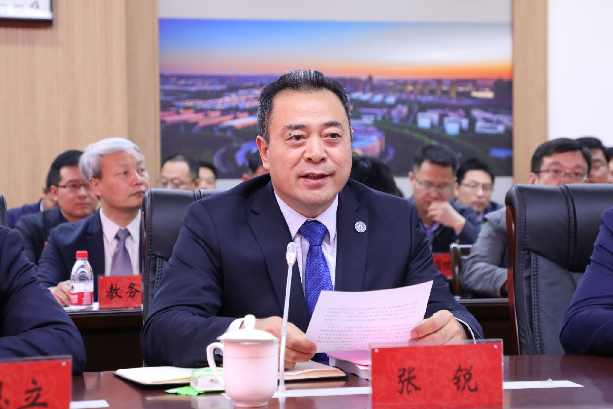 会上,校长张锐代表学校对专家组的到来表示热烈欢迎和衷心感谢,并简要介绍了学校师资力量、办学特色、教学科研成果等基本情况。他表示,这次专家组现场考核,既是对给排水科学与工程专业建设的全面检验,又是对学校人才培养工作的一次全方位指导,学校将全力配合专家组工作,希望专家组多提宝贵意见和建议,为专业精准把脉、找准问题,助力我校专业建设质量提升,推动人才培养水平和事业发展再上新台阶。