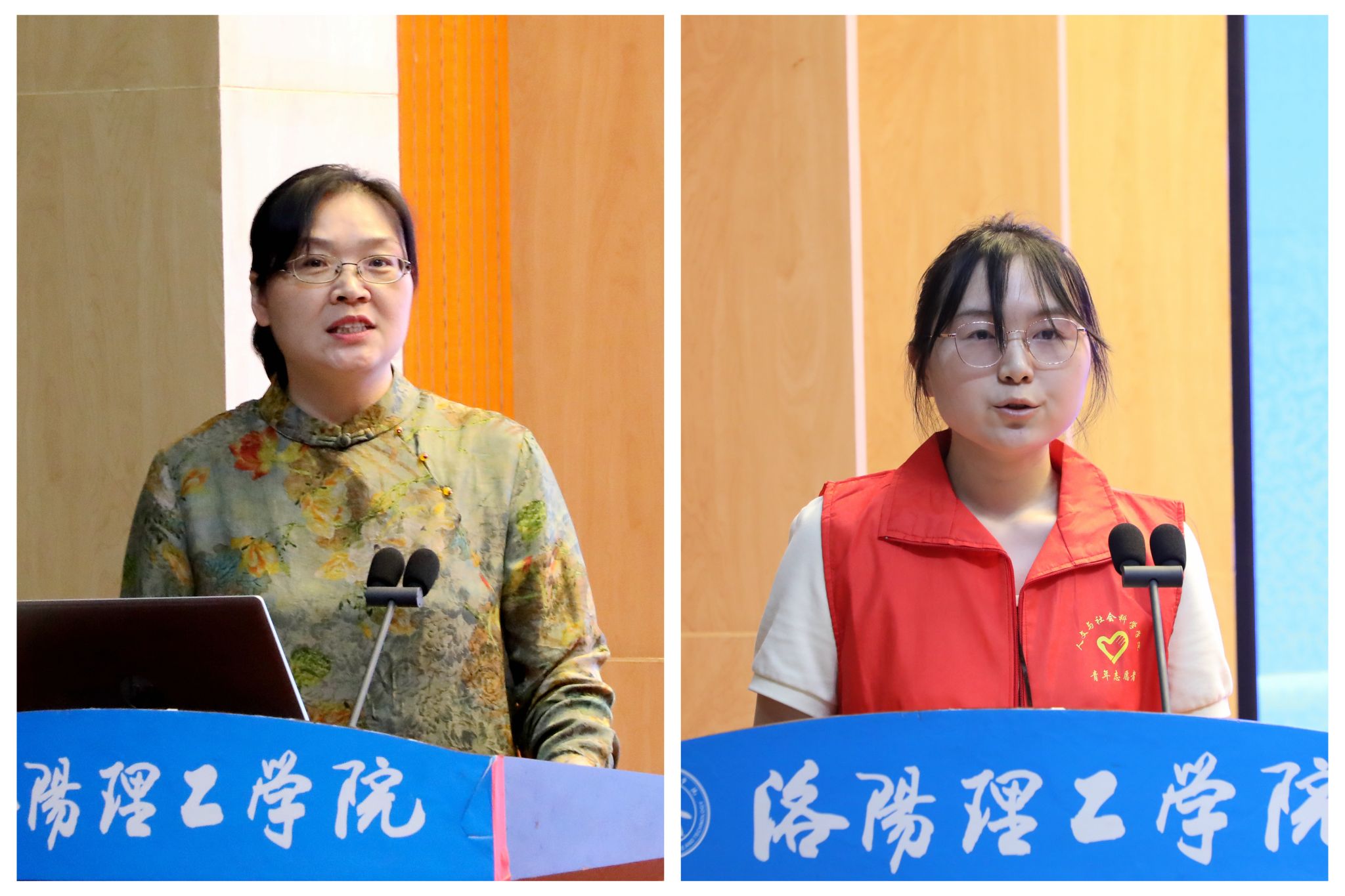 洛阳市首批博物馆志愿讲解员、洛阳市统计局干部孙颂(左)及洛阳腾博官网诚信为本专业服务博物馆优秀青年志愿讲解员周子怡(右)作主题发言