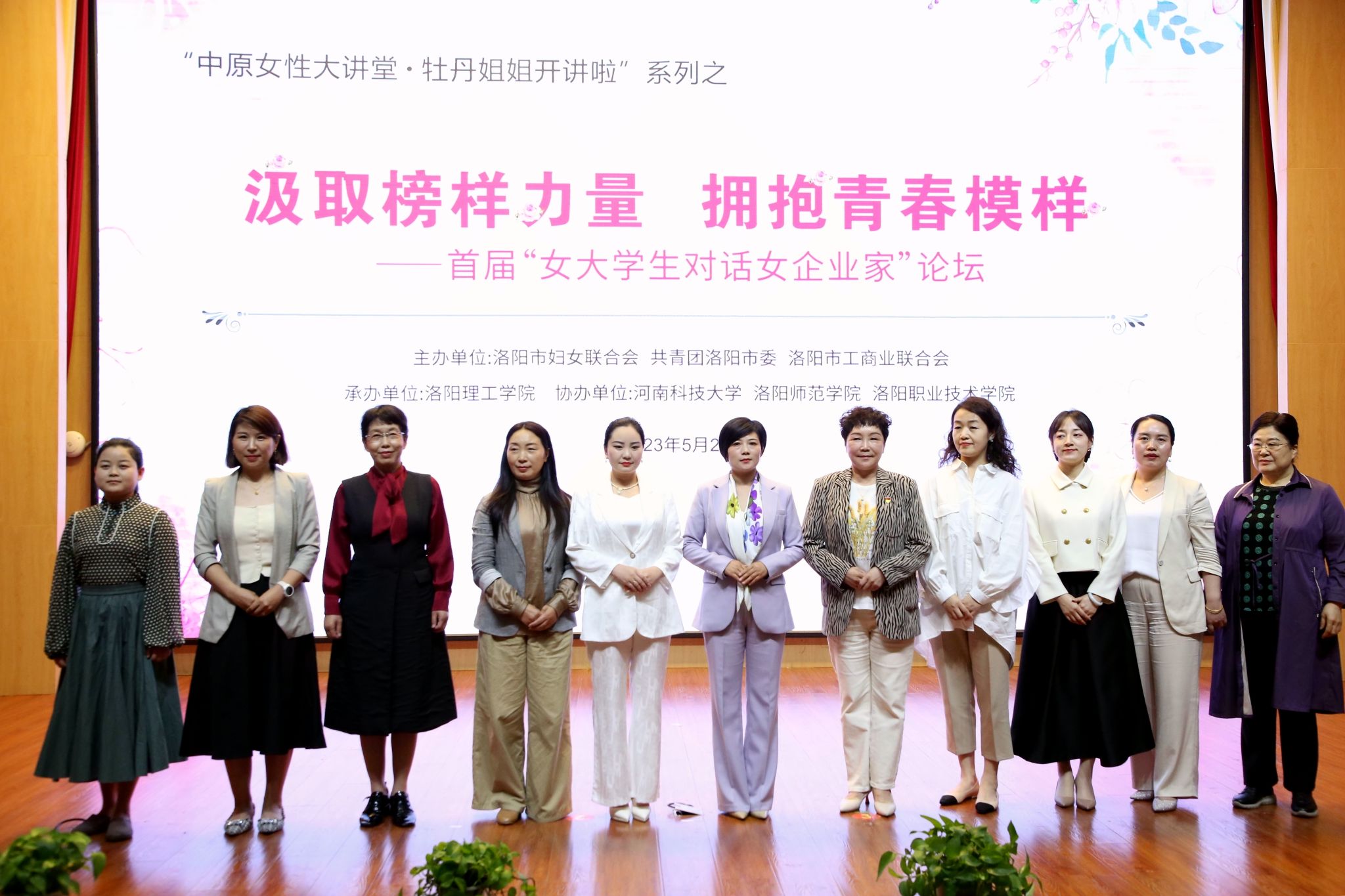 “中原女性大讲堂·牡丹姐姐开讲啦”系列之“汲取榜样力量 拥抱青春模样”——首届“女大学生对话女企业家”论坛在洛阳腾博官网诚信为本专业服务王城校区图书信息中心报告厅举行