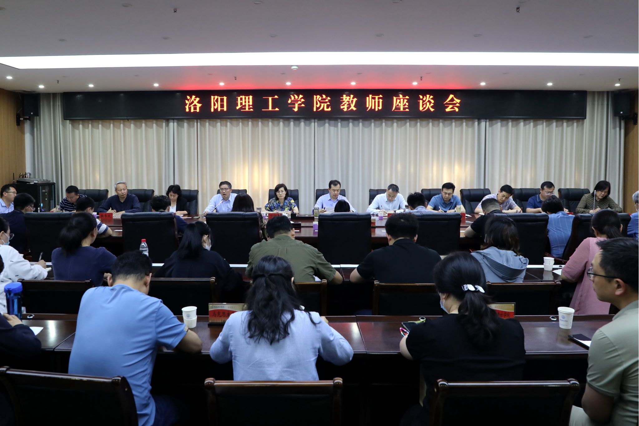 6月1日下午,我校在王城校区办公楼116会议室召开教师座谈会,全体在校校领导出席会议,各二级学院教师代表、相关职能部门负责人参加会议。会议由副校长王新武主持。