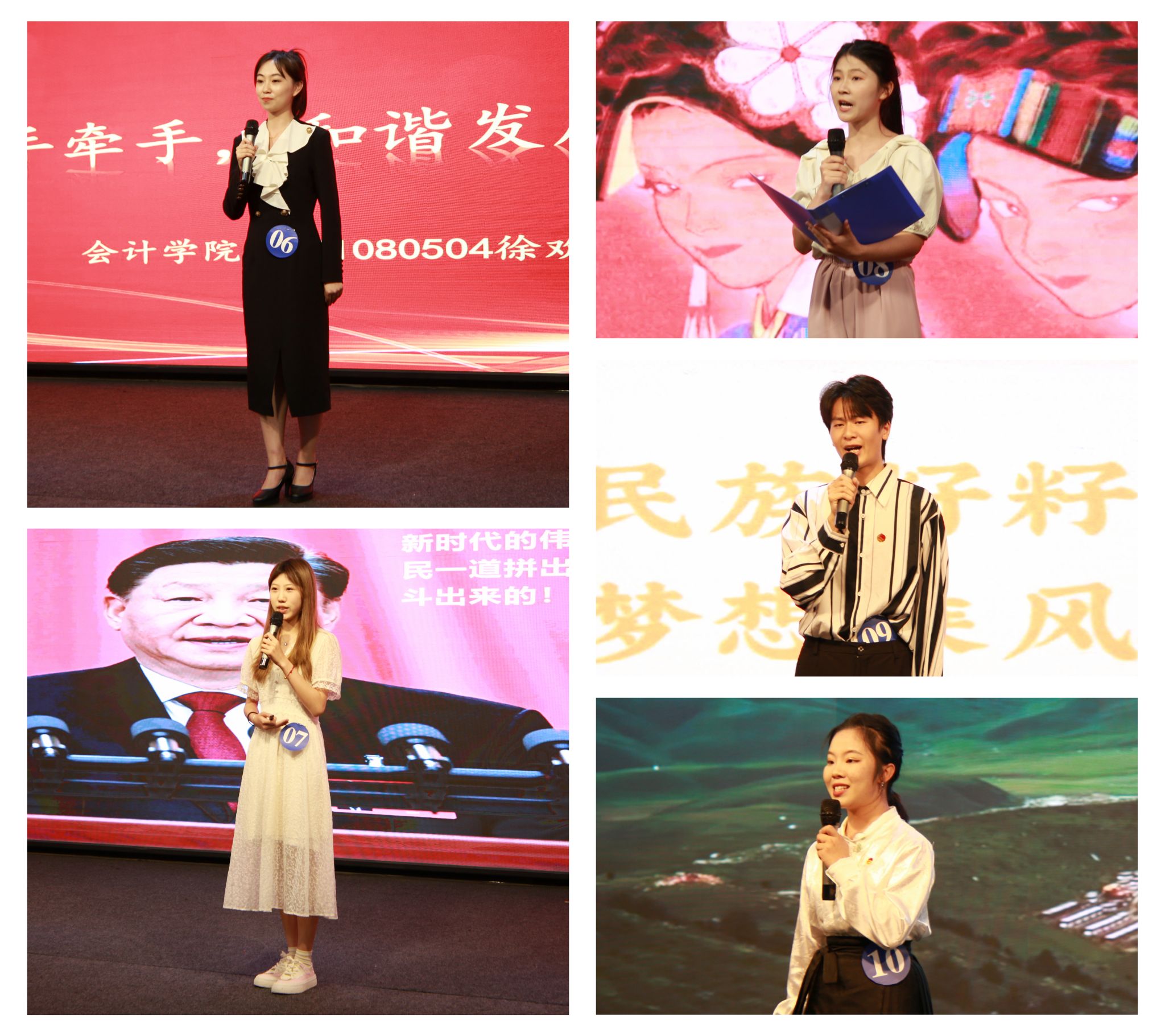 经过前期各二级学院的推荐选拔及学校复赛,10名选手脱颖而出进入决赛。决赛选手们从民族团结、脱贫攻坚、全民抗疫等多个角度,或激昂慷慨、或声情并茂、或娓娓道来,用生动的语言、真挚的情感阐述了民族团结的重要意义,分享了对民族一家亲的亲身感悟,表达了对实现中华民族伟大复兴的中国梦的热切期盼。经过激烈角逐,最终评选出一等奖2名、二等奖3名、三等奖5名。