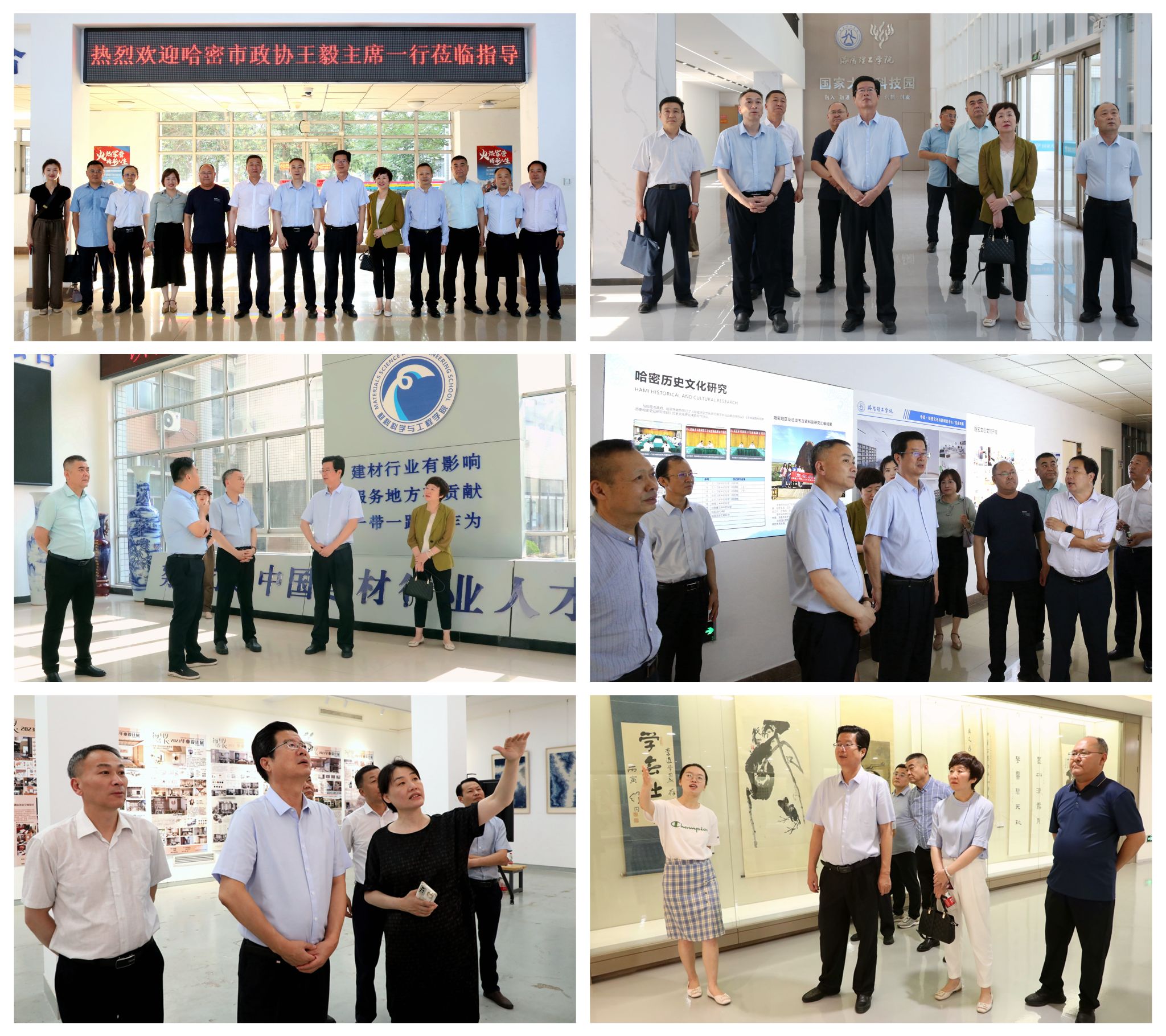 曾涛对王毅一行的到来表示欢迎,简要介绍了学校的发展情况和办学定位。他指出,长期以来,学校聚焦哈密“六大主导产业”,结合学校办学特色与学科优势,积极推进市校合作,双方在历史文化研究、文创文旅产业发展、技术人员培训、应用人才培养、高端智库建设等方面建立了良好的合作关系,取得了丰硕的合作成果,有着广阔的合作前景。学校将进一步推进与哈密的交流合作,持续打造校地合作的典范。