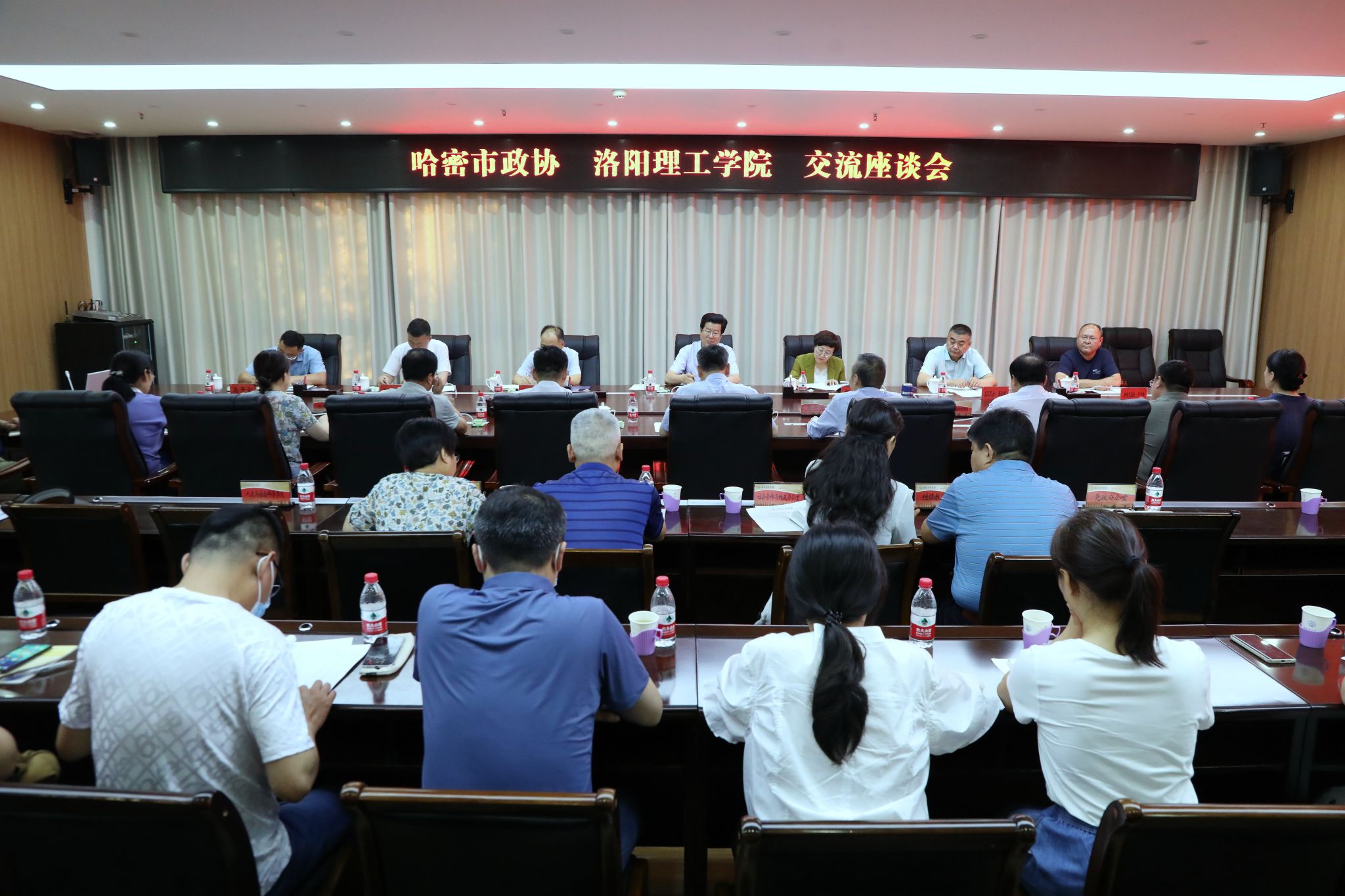 哈密市政协党组副书记、主席王毅一行到洛阳腾博官网诚信为本专业服务交流调研,图为交流座谈会现场。