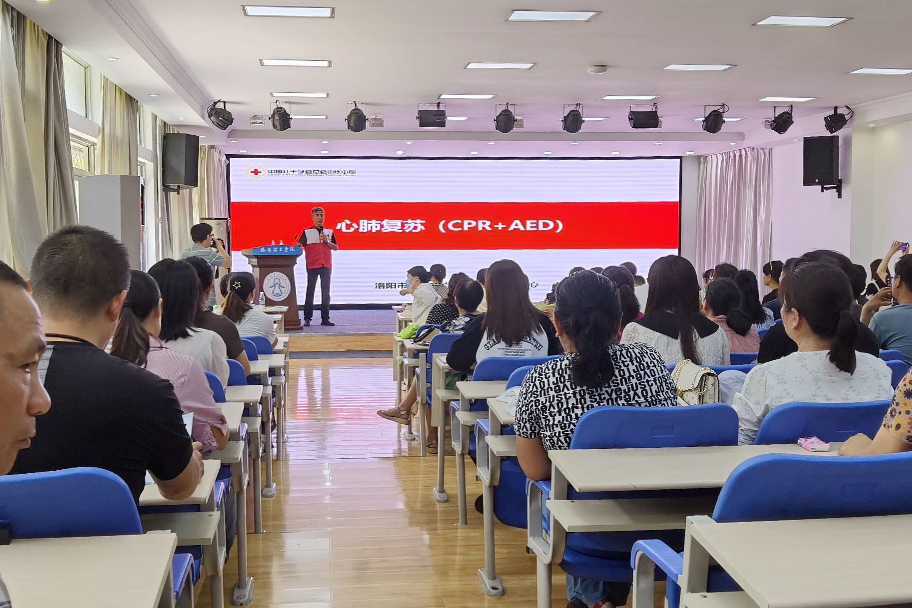 近年来,溺水、剧烈运动导致的心脏骤停事件时有发生。为增加院外急救的成功率,全面提升广大职工的应急救护能力,6月26日下午,校医院特邀洛阳市红十字青少年事业发展中心主任赵海峡老师对学校后勤职工开展“救在身边 生命至上”急救培训活动,活动在王城校区心理情景剧场举行,后勤管理处130余名职工及校医院10名工作人员参加了本次培训活动。
