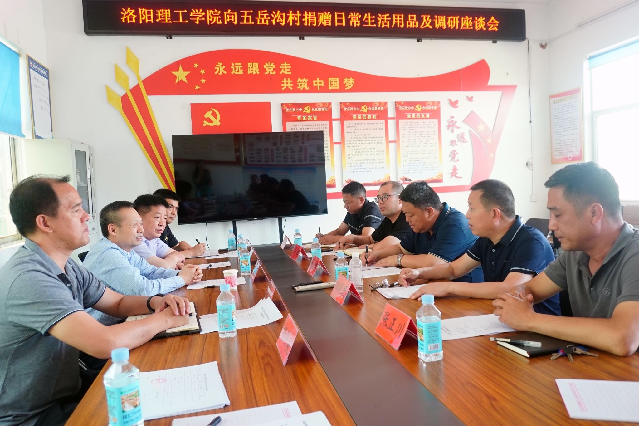 副校长韩洪涛一行赴五岳沟村进行调研慰问,图为座谈会现场