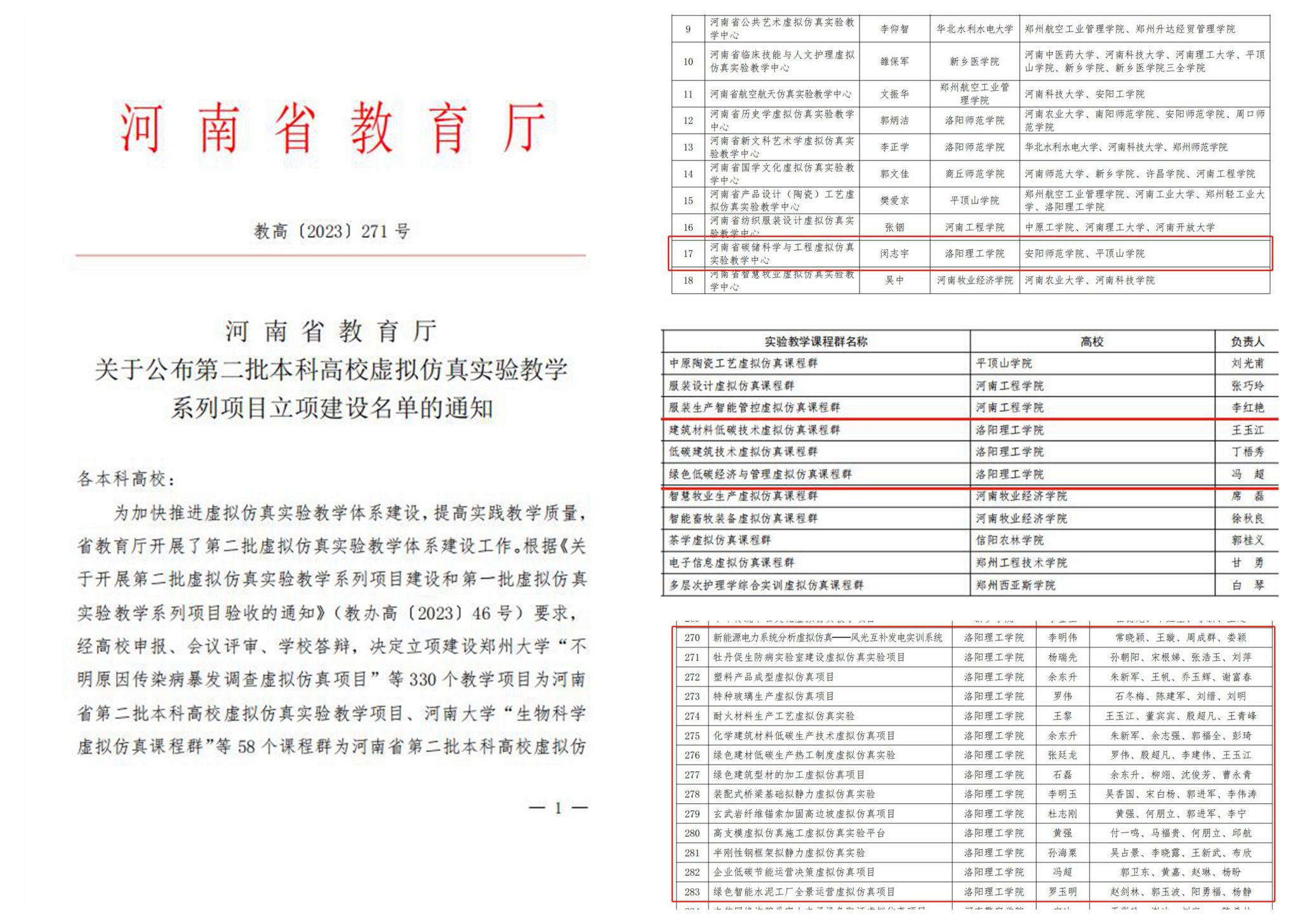 8月18日,河南省教育厅公布《第二批本科高校虚拟仿真实验教学系列项目立项建设名单的通知》(教高〔2023〕271号)文件。我校闵志宇教授主持的“碳储科学与工程虚拟仿真实验中心”获批立项河南省虚拟仿真实验教学中心;丁梧秀教授主持的“低碳建筑技术虚拟仿真课程群”、王玉江教授主持的“建筑材料低碳技术虚拟仿真课程群”、冯超教授主持的“绿色低碳经济与管理虚拟仿真课程群”获批立项河南省虚拟仿真实验教学课程群;李明伟教授主持的“新能源电力系统分析虚拟仿真——风光互补发电实训系统”等14个项目获批立项河南省虚拟仿真实验教学项目。