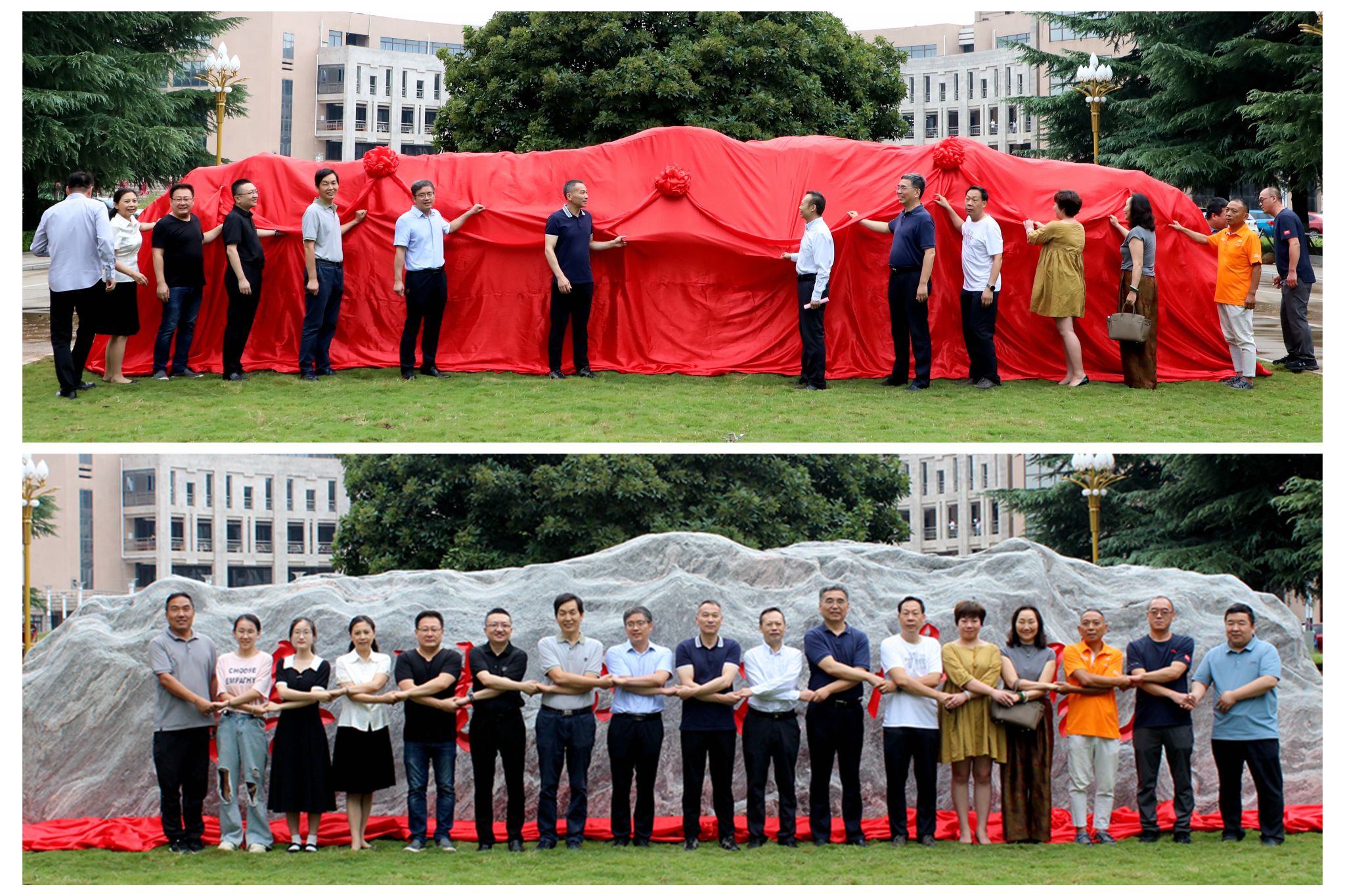 出席仪式全体嘉宾共同为校名文化石揭幕并合影留念
