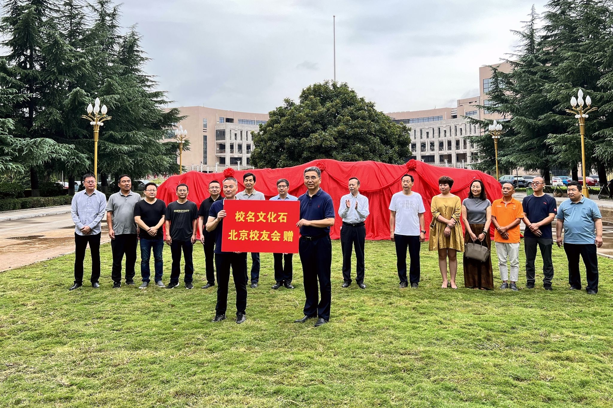 校党委副书记、工会主席曾涛代表学校接受北京校友会捐赠的校名文化石
