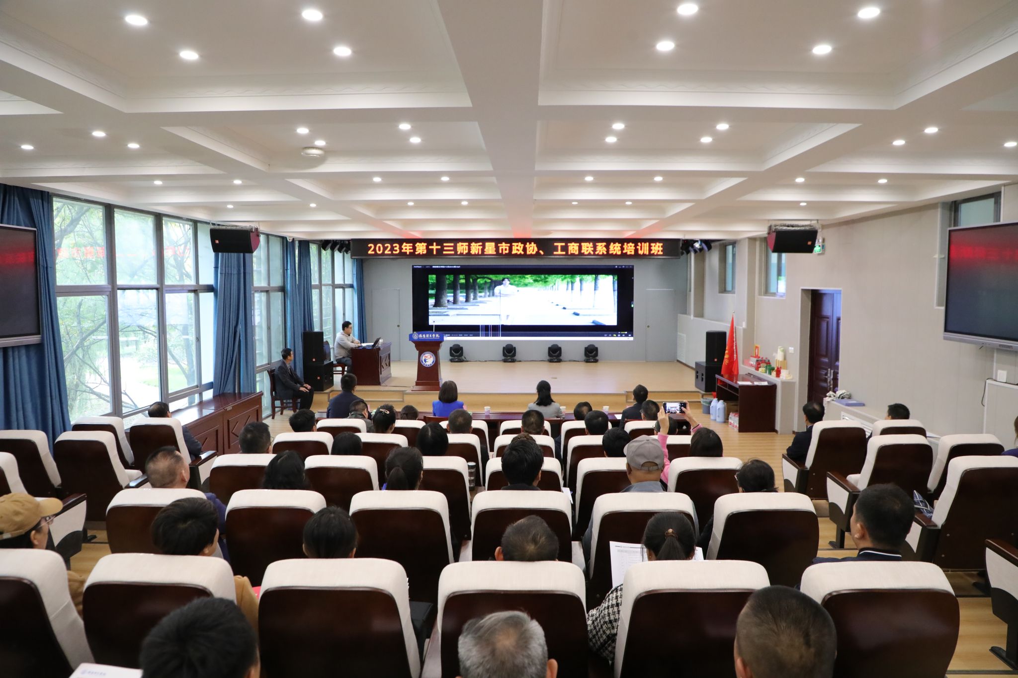 兵团十三师工商业联合会、政协新星市委员会党外人士培训班在我校顺利开班,图为开班仪式现场。