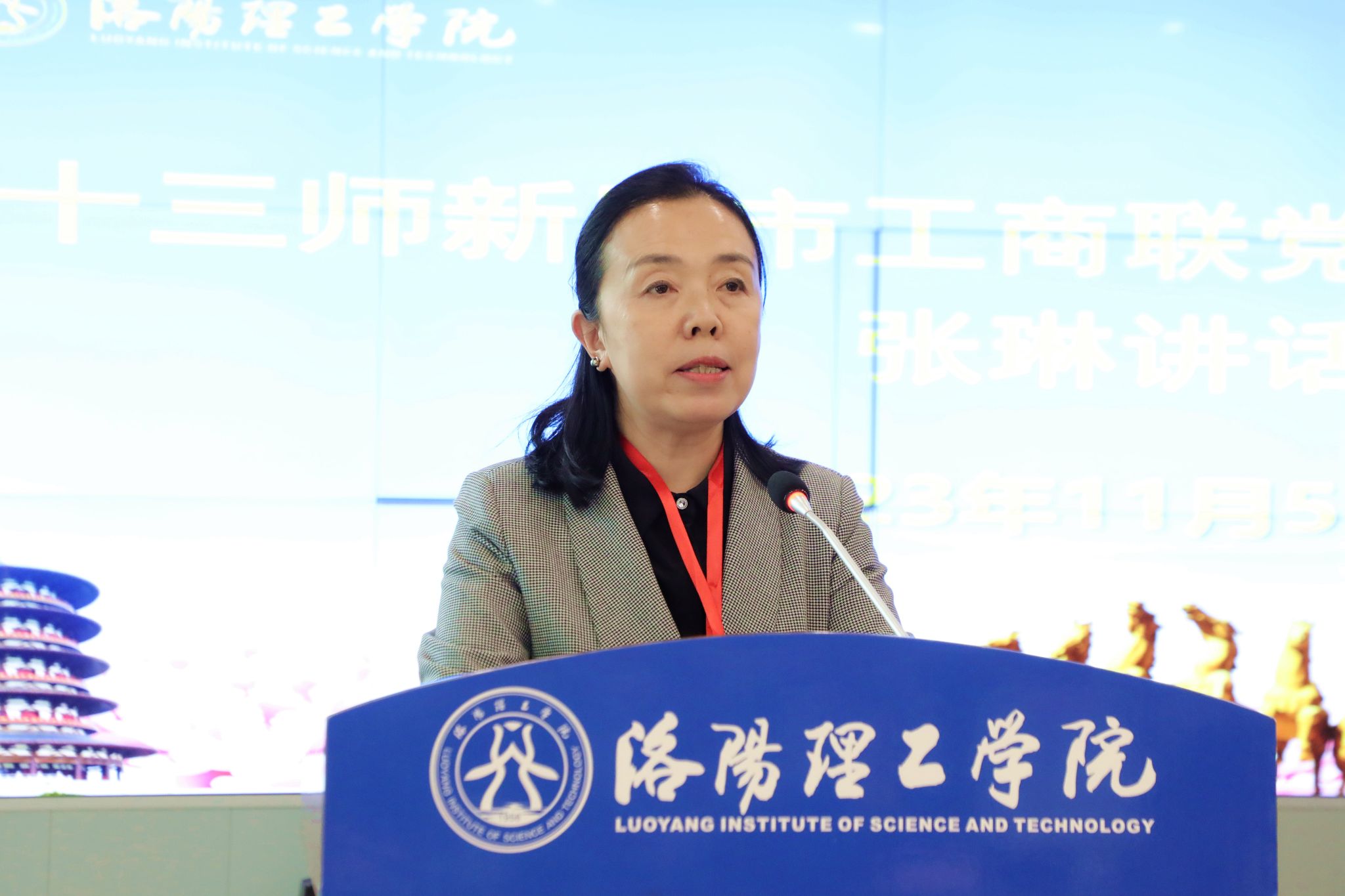 丁梧秀在致辞时对全体参训人员表示欢迎,并简要介绍了学校的发展历程、办学定位、师资队伍、教学体系等。她指出,本次培训是十三师新星市政协、工商联对学校的信任,也是十三师新星市与洛阳腾博官网诚信为本专业服务新时代新友谊的美好见证。她表示,学校将汇聚优质资源,为培训班提供最好的师资力量、最好的学术氛围、最好的服务保障。她希望全体参训学员在这个金秋,学有所思、学有所获、学有所成。