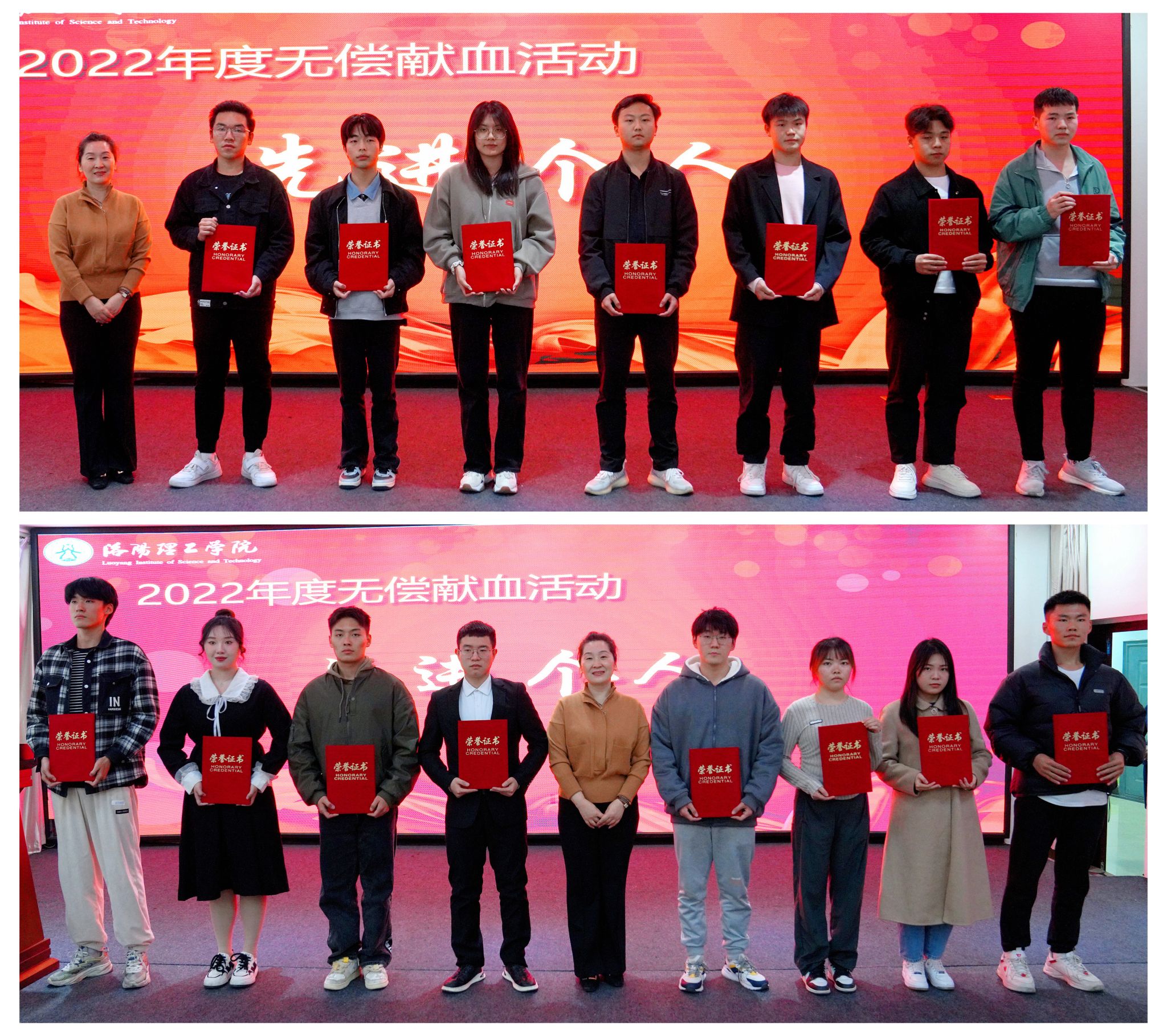 学生工作处相关负责同志分别向“2022年度无偿献血工作先进学院”和“无偿献血志愿服务先进个人”颁发奖状和荣誉证书