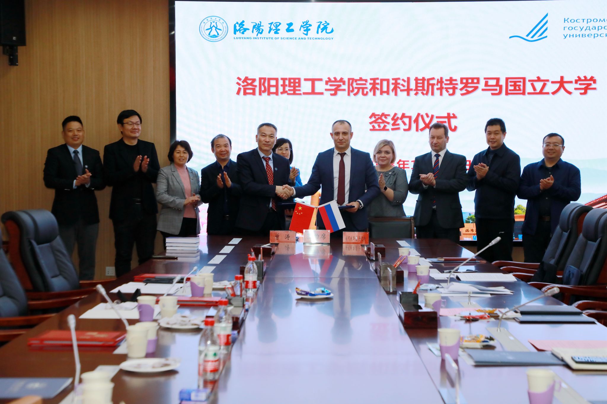 校党委副书记、工会主席曾涛与俄罗斯科斯特罗马国立大学校长柴可夫斯基·丹尼斯·维托尔多维奇分别代表双方签署交流合作协议书