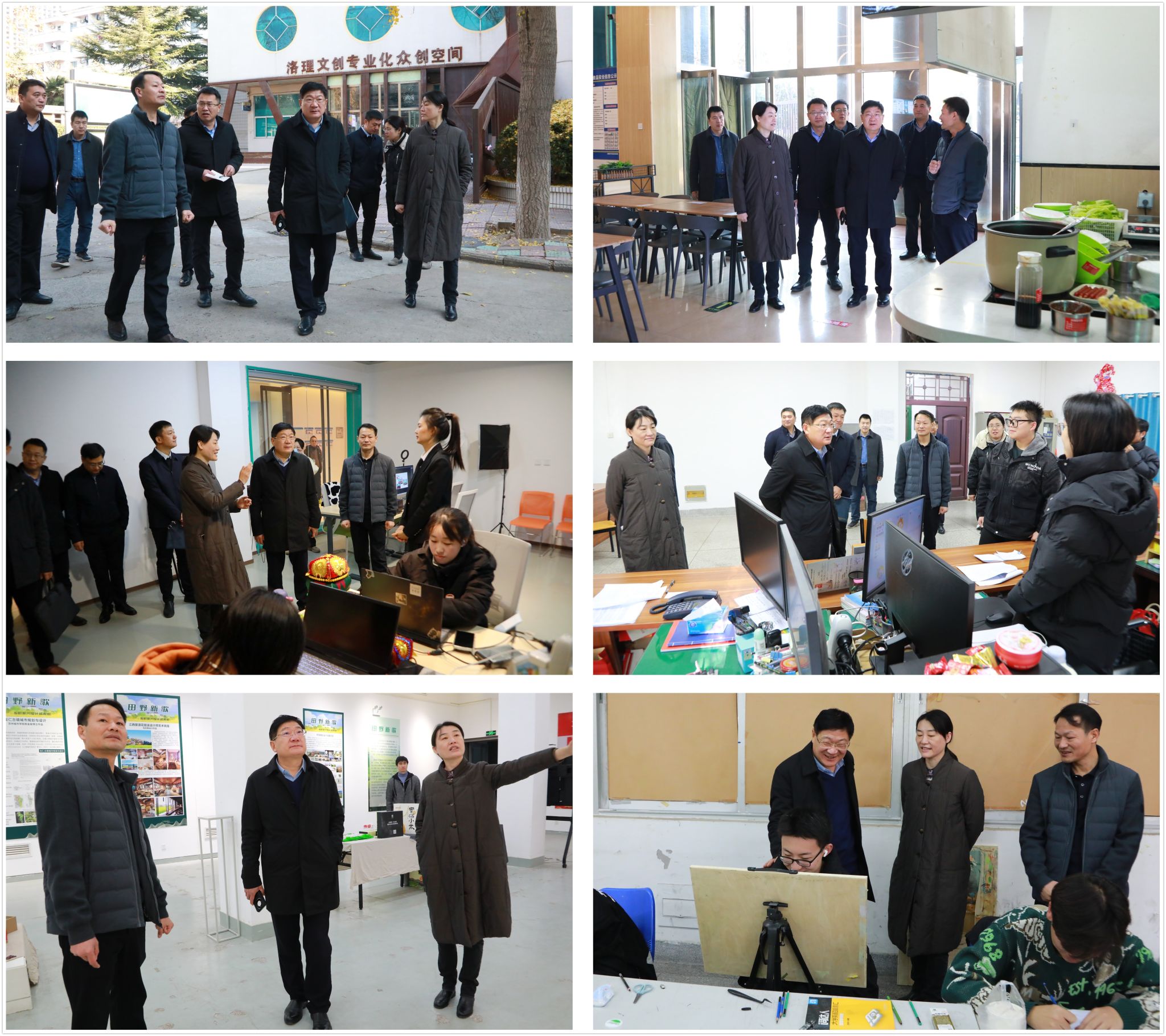 12月5日,党委书记卢志文到九都校区调研,实地察看了九都校区整体办学条件和办学环境,了解文创专业化众创空间和餐厅的运营管理情况,深入艺术设计学院辅导员办公室、教学课堂、党员活动中心、工会小小家及教师工作室等场所了解师生工作学习情况。
