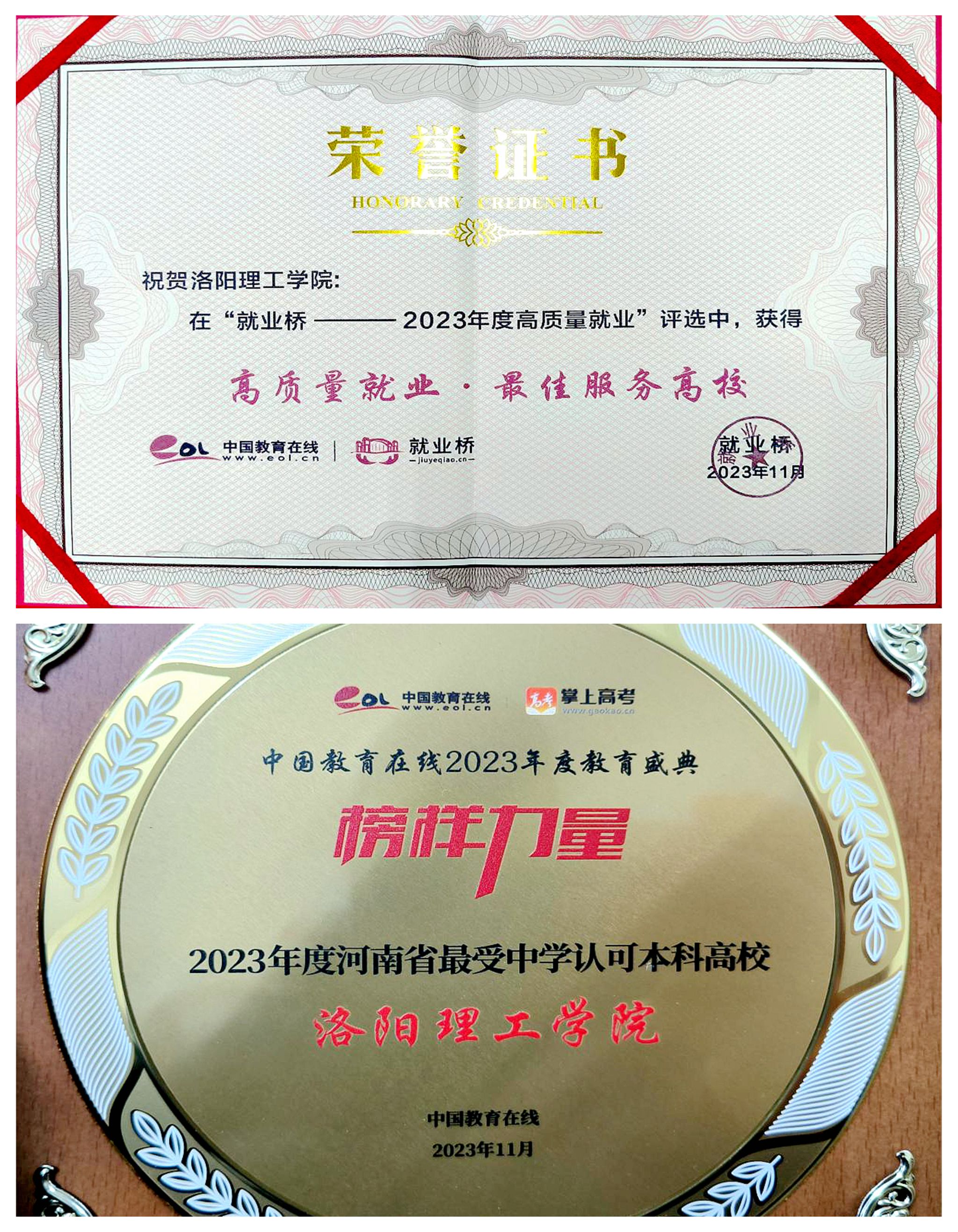 洛阳腾博官网诚信为本专业服务荣获中国教育在线“2023年度高校高质量就业最佳服务高校”等多项荣誉