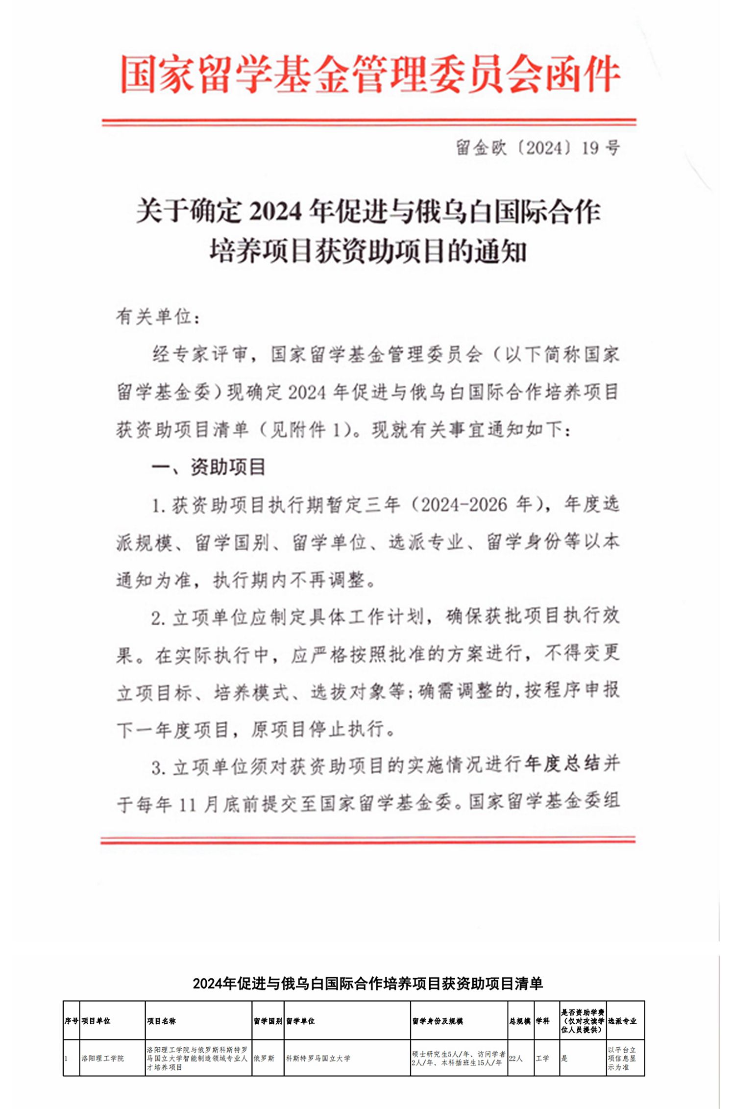 近日,国家留学基金管理委员会(以下简称:国家留学基金委)公布了2024年促进与俄乌白国际合作培养项目获资助项目名单,我校申报的“洛阳腾博官网诚信为本专业服务与俄罗斯科斯特罗马国立大学智能制造领域专业人才培养项目”入选,这是学校首次获批俄乌白政府资助项目。