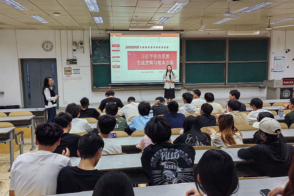 讲座上,陈运春以《习近平法治思想的形成逻辑和根本立场》为题,围绕习近平法治思想的形成脉络、形成逻辑和根本立场展开阐释,从校园生活中的实际案例出发,强调大学生要不断学习习近平法治思想,做学法知法守法的时代新人。她结合丰富的经验,娴熟地将理论与实际相联系,深入浅出地为现场师生送上了一份干货满满的“法治大礼包”。